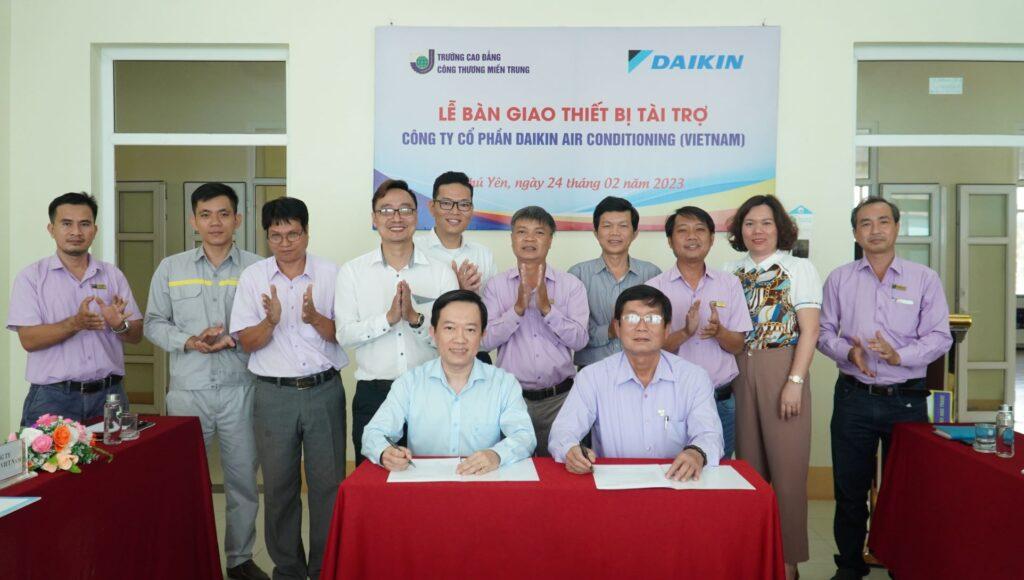 Sáng ngày 24/2 tại Khoa Điện và Tự động hóa trường Cao đẳng Công Thương miền Trung, Công ty Cổ phần Daikin Air Conditioning Việt Nam đã có buổi làm việc và ký kết chuyển giao thiết bị tài trợ cho chương trình đào tạo về máy lạnh thương mại của Nhà trường.