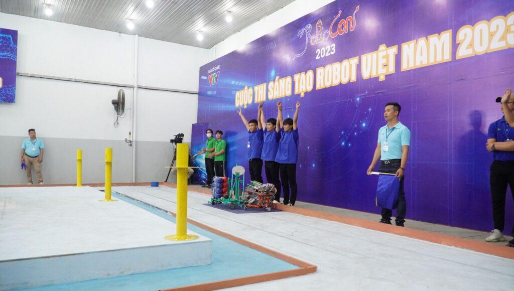 Chiều ngày 27/4 trải qua các trận đấu gay cấn và hấp dẫn vòng loại khu vực phía Nam, đội SunshineMITC của trường cao đẳng Công Thương miền Trung đã xuất sắc vượt qua các đại diện từ trường ĐH SP Kỹ thuật TP.HCM để cùng 5 đại diện khác vào vòng chung kết Cuộc thi Sáng tạo Robot Việt Nam 2023 được tổ chức vào cuối tháng 5/2023 tại tỉnh Nam Định.