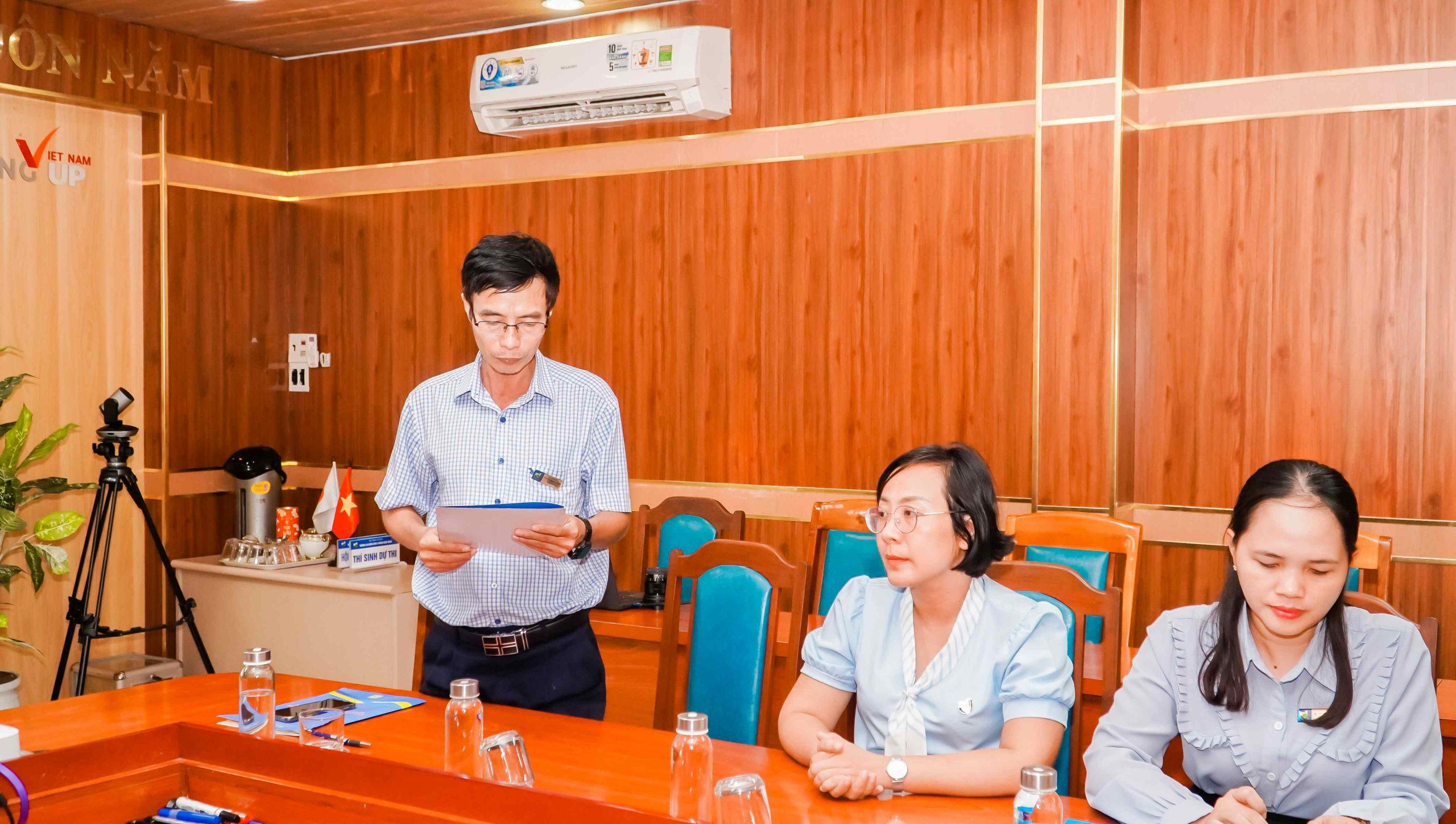ThS. Huỳnh Mạnh Nhân, trưởng phòng Quản lý chất lượng và NCKH đọc quyết định của Trường cử Sinh viên Phan Xuân Thìn tham gia chương trình lưu chuyển GDNN Asean – Hàn Quốc