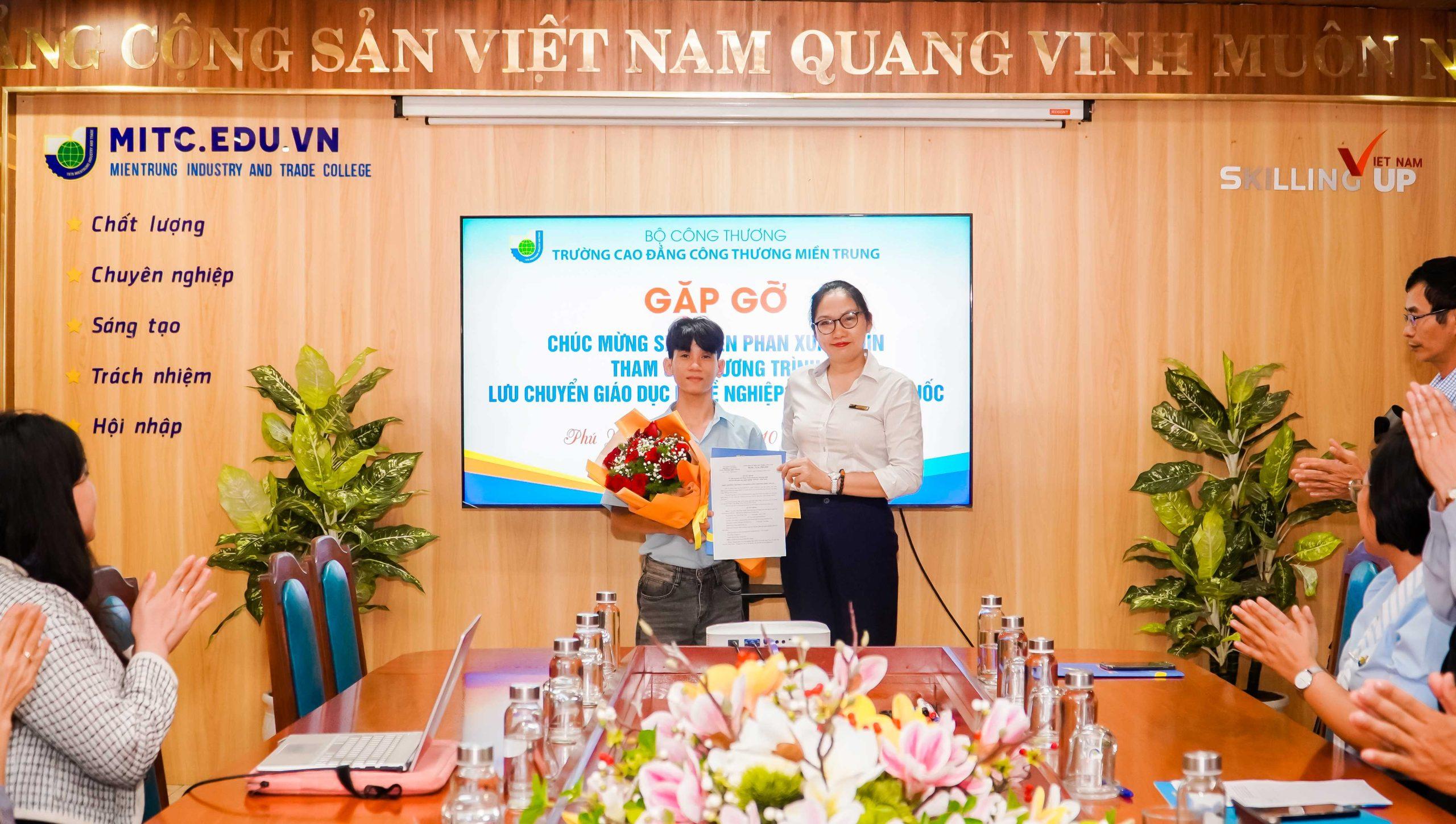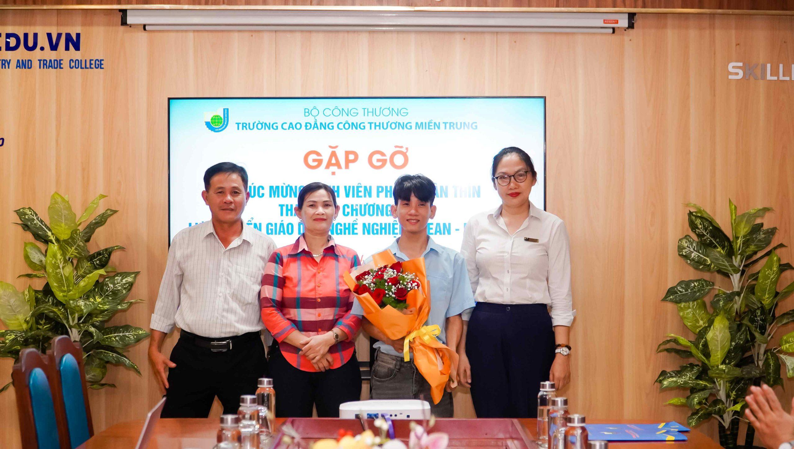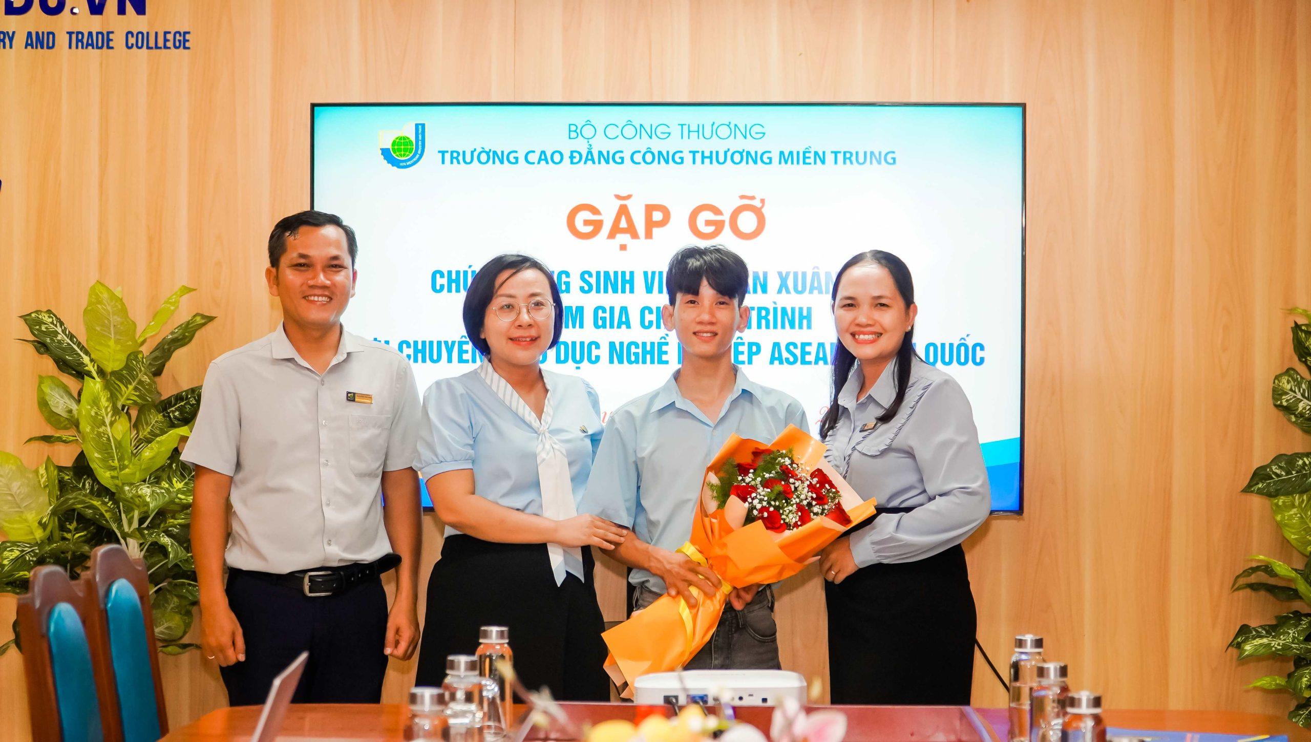 Vào chiều ngày 04/10, tại phòng họp B1, CS1, Trường Cao đẳng Công Thương miền Trung đã tổ chức buổi gặp gỡ và chúc mừng sinh viên Phan Xuân Thìn lớp Cao đẳng Tin 45, chính thức trở thành đại diện của nhà trường tham gia chương trình lưu chuyển giáo dục nghề nghiệp ASEAN – Hàn Quốc tại Singapore. Sự kiện này không chỉ là một dấu mốc quan trọng trong hành trình học tập của Thìn mà còn là niềm tự hào chung của toàn thể cán bộ, giáo viên và sinh viên nhà trường.