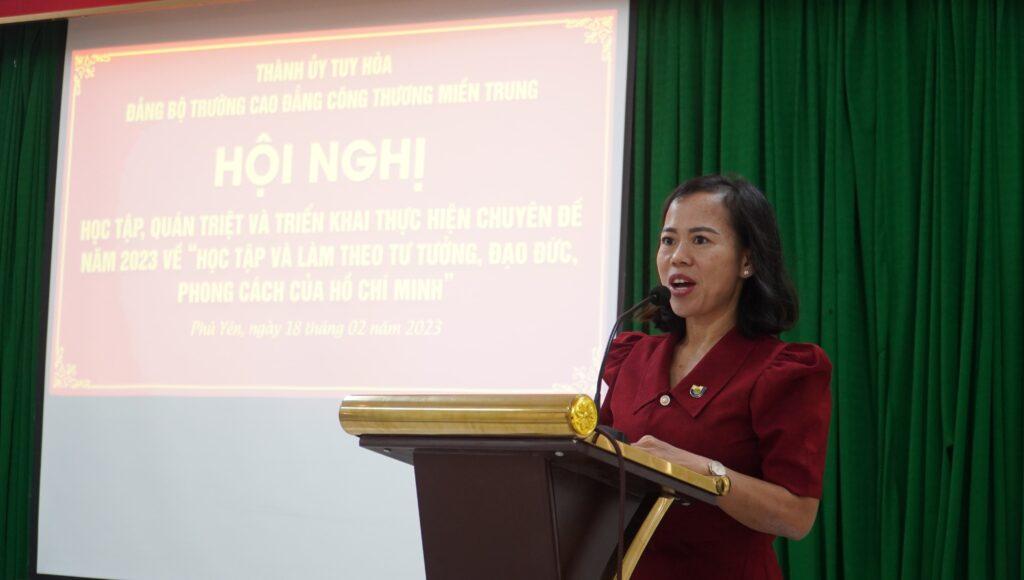 Tại hội nghị, đồng chí Cao Thị Nhung – Bí thư Chi bộ Tin học và Kinh tế đã trình bày về nội dung tư tưởng, đạo đức, phong cách Hồ Chí Minh và chủ trương, đường lối của Đảng về “Học tập và làm theo tư tưởng, đạo đức, phong cách Hồ Chí Minh về xây dựng văn hóa, con người Phú Yên và xây dựng văn hóa, con người MITC trong bối cảnh hội nhập”. Sau học tập, các chi, đảng bộ cơ sở tổ chức thảo luận, tập trung vào những thực trạng, khó khăn, hạn chế, đề ra các giải pháp giải quyết những vấn đề vướng mắc trong xây dựng và phát triển văn hóa, con người ở đơn vị và Nhà trường..