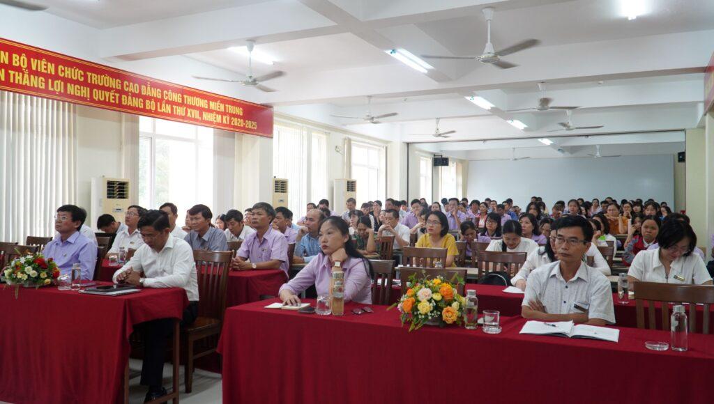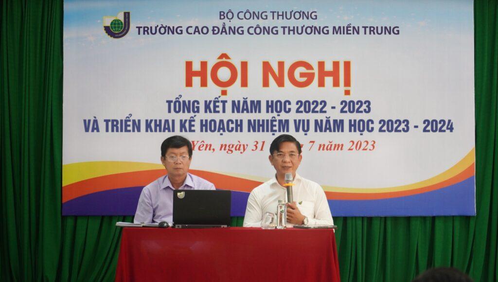 Sáng ngày 31/7/2023, tại Hội trường B2, Cơ sở 2, Trường Cao đẳng Công Thương miền Trung đã tổ chức hội nghị nhằm đánh giá, tổng kết hoạt động năm học 2022 – 2023, rút ra những tồn tại, hạn chế và nguyên nhân từ đó xây dựng phương hướng, nhiệm vụ năm học 2023 – 2024.