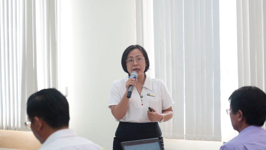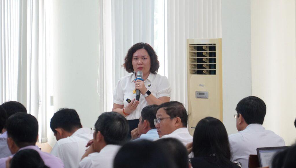 ThS. Huỳnh Mạnh Nhân – Trưởng phòng Quản lý chất lượng và Nghiên cứu khoa học, trình bày báo cáo về công tác quản lý chất lường và nghiên cứu khoa học tại Hội nghị