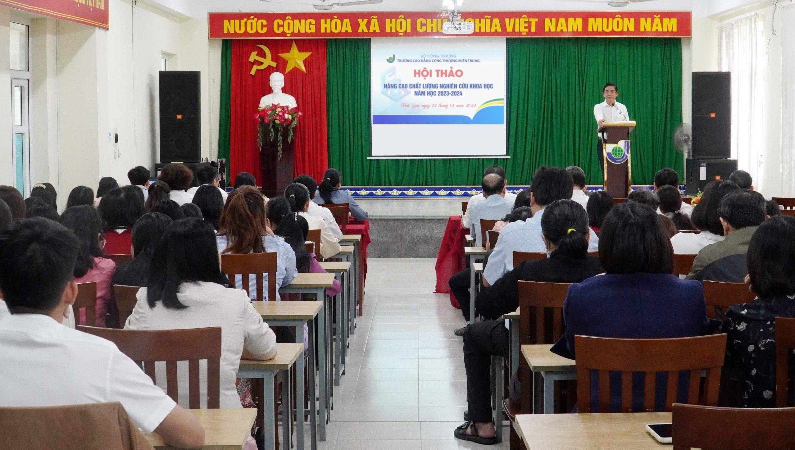 Nhằm tạo sự chuyển biến trong nhận thức, tổ chức, quản lý và thực hiện nhiệm vụ nghiên cứu khoa học trong đội ngũ giảng viên, giáo viên góp phần nâng cao chất lượng đào tạo của Nhà trường. Ngày 12/01/2024 Trường Cao đẳng Công Thương miền Trung tổ chức hội thảo “Nâng cao chất lượng nghiên cứu khoa (NCKH) học năm 2023-2024”.