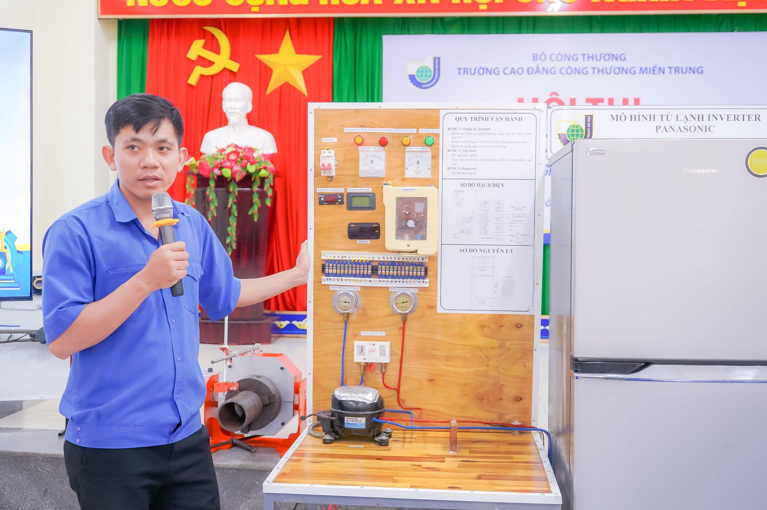 Trong ngày 19/5, 15 thiết bị đã được nhà giáo trực tiếp trình bày, thuyết minh và mô phỏng ứng dụng trong thực tiễn giảng dạy. Các mô hình trải rộng nhiều lĩnh vực như công nghệ kỹ thuật điện, điện tử, tự động hóa, cơ khí….. Nhiều thiết bị có tính ứng dụng cao, tích hợp công nghệ mới, dễ dàng tiếp cận, giúp người học hình dung rõ hơn về quy trình, nguyên lý hoạt động, từ đó nâng cao khả năng thực hành và tư duy sáng tạo.
