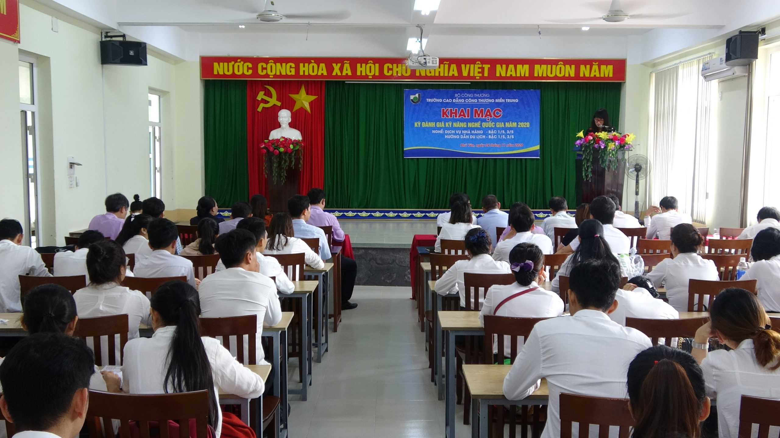 Sáng ngày 24/11, tại Hội trường B2, Cơ sở 2, Trường Cao đẳng Công Thương miền Trung tổ chức khai mạc Kỳ đánh giá kỹ năng nghề Quốc gia (bậc 1, bậc 3) cho 2 nghề gồm: Dịch vụ nhà hàng và Hướng dẫn du lịch.