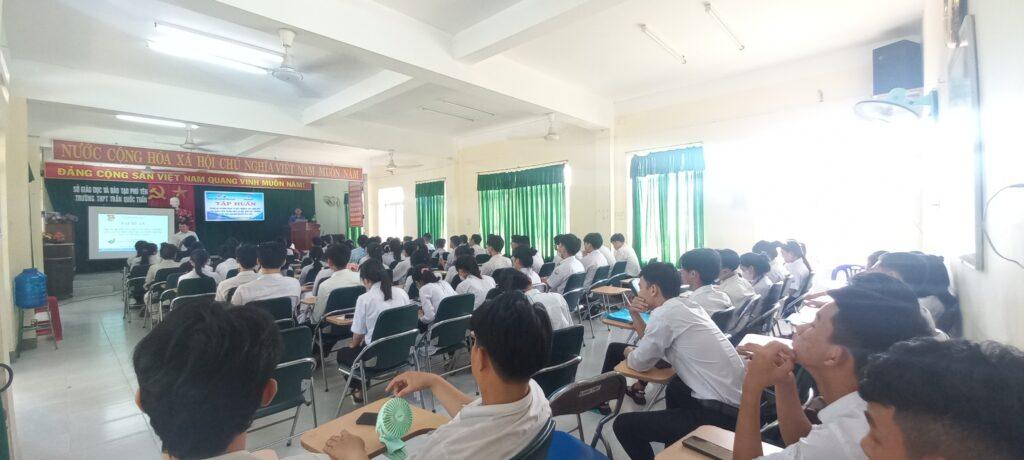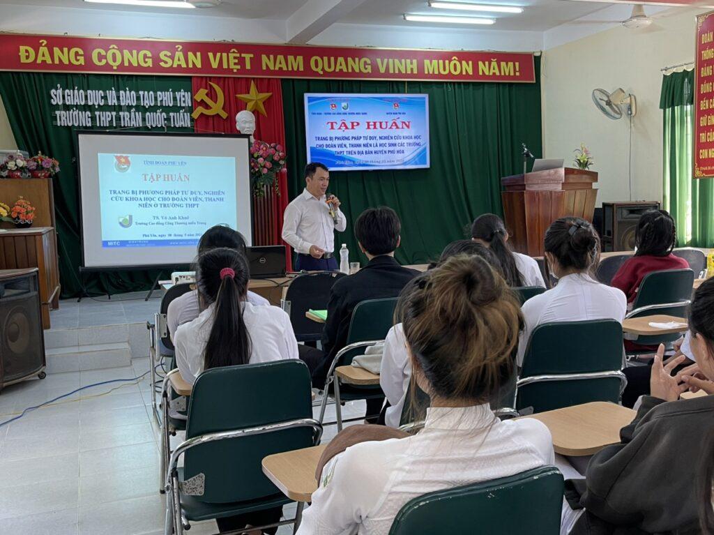 Sáng ngày 08/5/2023, tại Trường THPT Trần Quốc Tuấn, huyện Phú Hòa, Tỉnh Đoàn Phú Yên phối hợp Trường Cao đẳng Công Thương miền Trung tổ chức lớp tập huấn chuyên đề “Trang bị phương pháp tư duy, nghiên cứu khoa học cho đoàn viên là học sinh THPT” cho hơn 100 đoàn viên, thanh niên trên địa bàn huyện Phú Hòa. Đây là một hoạt động trong khuôn khổ chương trình phối hợp giữa Tỉnh Đoàn Phú Yên và Trường Cao đẳng Công Thương miền Trung về “Phát triển không gian sáng tạo trẻ và khởi nghiệp, đổi mới sáng tạo năm 2023”.