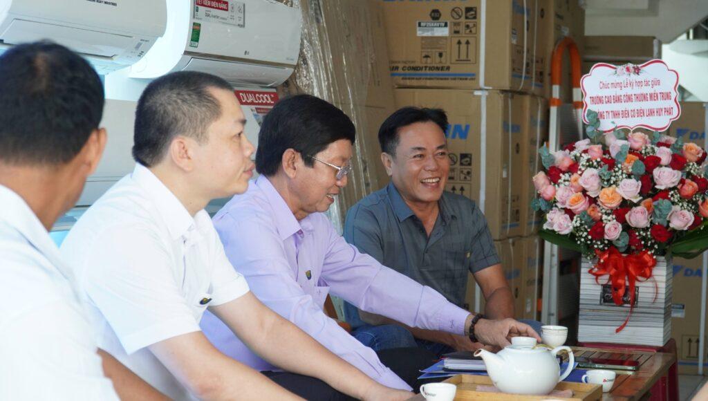 Sau đó, ông Võ Tấn Huy, đại diện Công ty TNHH Điện Cơ Điện Lạnh Huy Phát và ThS. Nguyễn Văn Đức, đại diện trường Cao đẳng Công Thương miền Trung đã cùng đặt bút ký vào biên bản thỏa thuận hợp tác cam kết sẽ hỗ trợ và phát triển cùng nhau trong các hoạt động đào tạo, bồi dưỡng, tuyển dụng, và nghiên cứu phát triển nguồn nhân lực giữa hai bên.