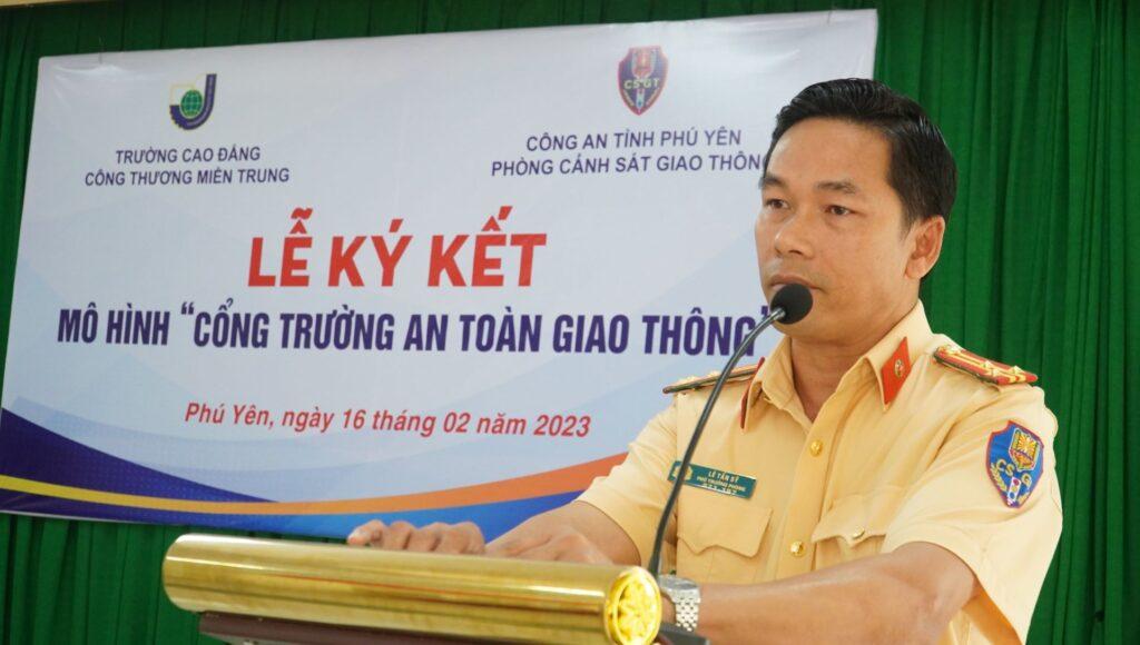 Phát biểu khai mạc, đồng chí Thượng tá Lê Tấn Sỹ – Phó Trưởng phòng CSGT, Công an Tỉnh nhấn mạnh về những nỗi đau và mất mát to lớn của tai nạn giao thông gây ra đối với Việt Nam nói chung và toàn thế giới nói riêng. Chương trình hôm nay là một bước hiện thực hóa chương trình ký kết phối hợp tăng cường công tác tuyên truyền, phổ biến giáo dục pháp luật về TT ATGT trong các cơ sở giáo dục giai đoạn 2022 – 2023 giữa Bộ Giáo dục và Đào tạo với Bộ Công an.