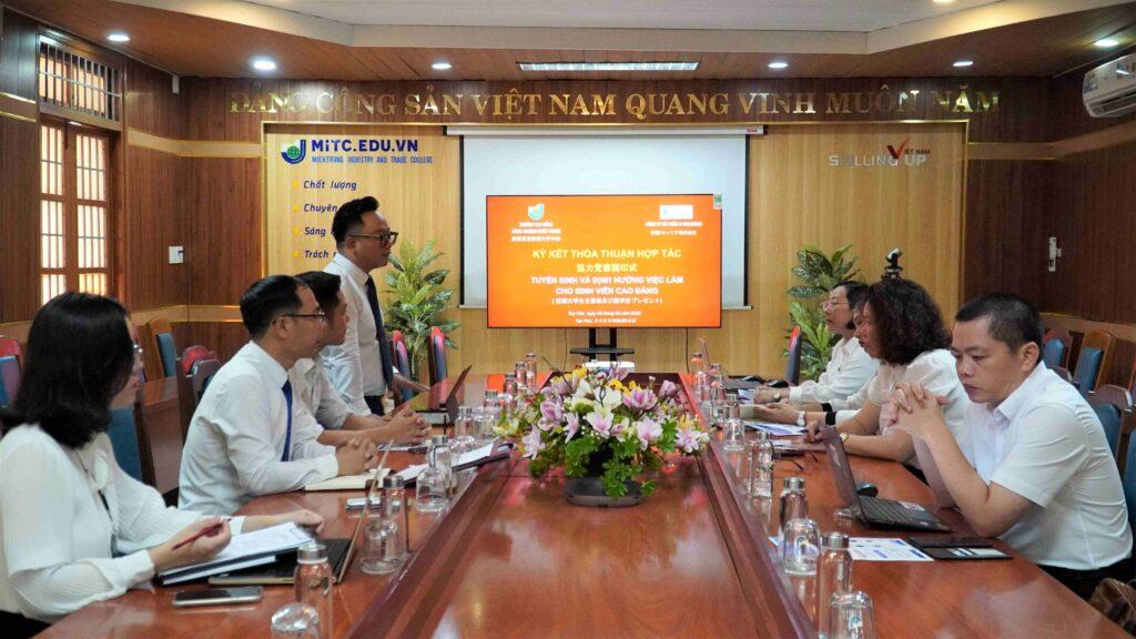 Cũng trong buổi ký kết, Ông Nguyễn Đức Thông – Phó Tổng Giám đốc Công Ty đã nhấn mạnh: Việc ký kết thỏa thuận hợp tác này là cầu nối đưa sinh viên làm việc tại Nhật Bản theo diện visa Đặc định, visa Kỹ sư thực hành, tạo điều kiện thuận lợi hỗ trợ sinh viên của Nhà trường sau khi tốt nghiệp Cao đẳng có thêm nhiều cơ hội việc làm. Với kinh nghiệm được đúc kết trong môi trường làm việc chuyên nghiệp, hiện đại của Nhật Bản, sau 5 năm cũng sẽ được Công ty hỗ trợ chuyển đổi visa hoặc nếu có mong muốn trở về Việt Nam sau đó cũng sẽ được hỗ trợ giới thiệu việc làm trong nước.