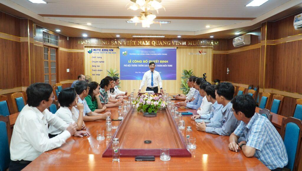 Chiều ngày 30/5, tại phòng họp B1 cơ sở 1, trường Cao đẳng Công Thương miền Trung đã tổ chức Lễ công bố quyết định bổ nhiệm Phó Hiệu trưởng Trường Cao đẳng Công Thương miền Trung. Tham dự buổi lễ có TS. Trần Kim Quyên – Bí thư Đảng ủy, Chủ tịch Hội đồng trường, Hiệu trưởng; Ban Giám hiệu; TS. Lê Kim Anh – Trưởng phòng TCHC cùng trưởng các đơn vị nhà trường.