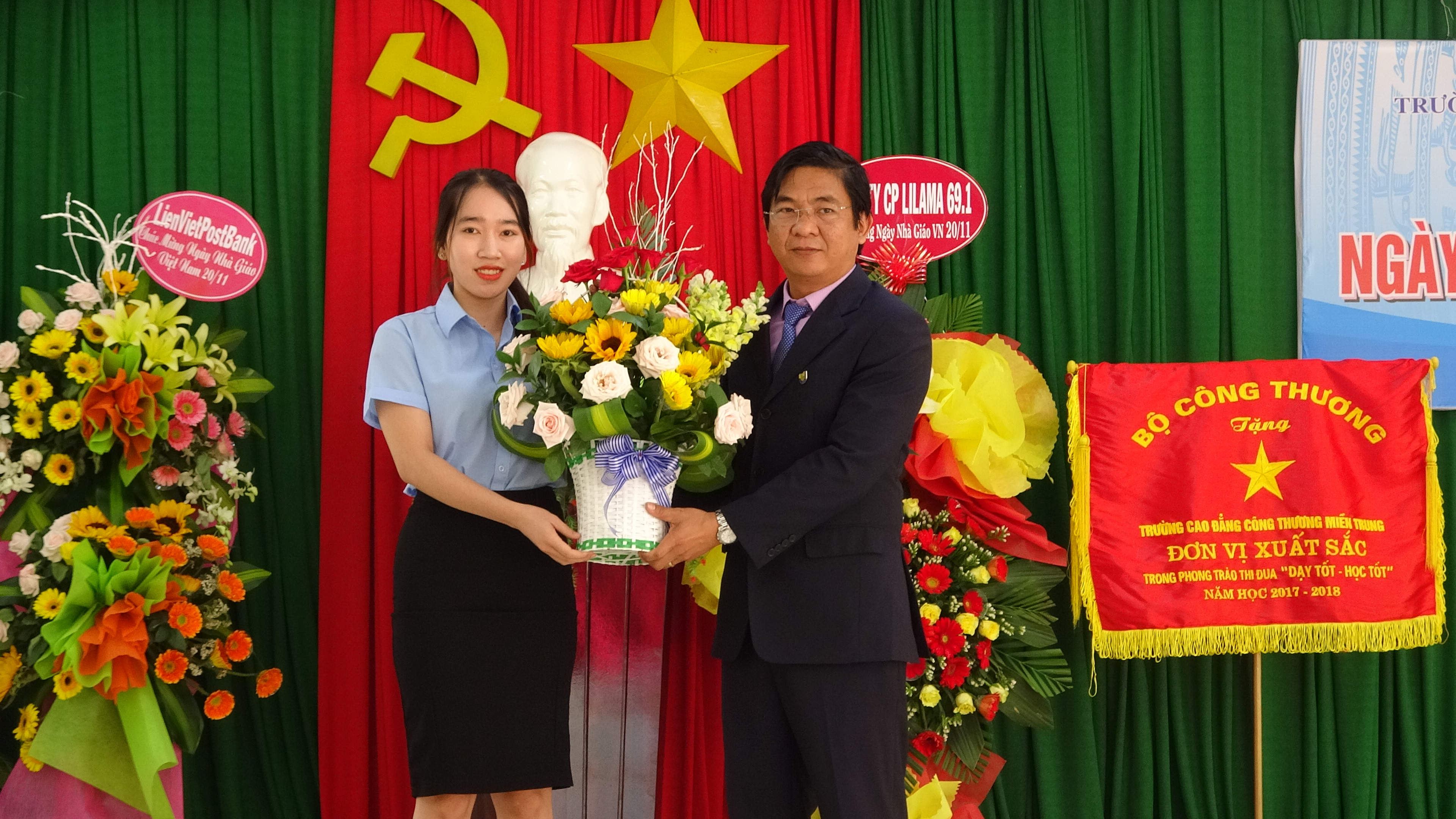 Nhân dịp này, để cảm ơn những người thầy, người cô đã thầm lặng đưa những chuyến đò qua sông, để lớp lớp thế hệ học trò đến với chân trời của tri thức, sinh viên Lê Thị Thanh Thủy – lớp CĐ QTKD41 đại diện cho học sinh sinh viên nhà trường đã phát biểu chúc mừng và dành tặng những bó hoa tươi thắm nhất đến các thầy cô giáo.
