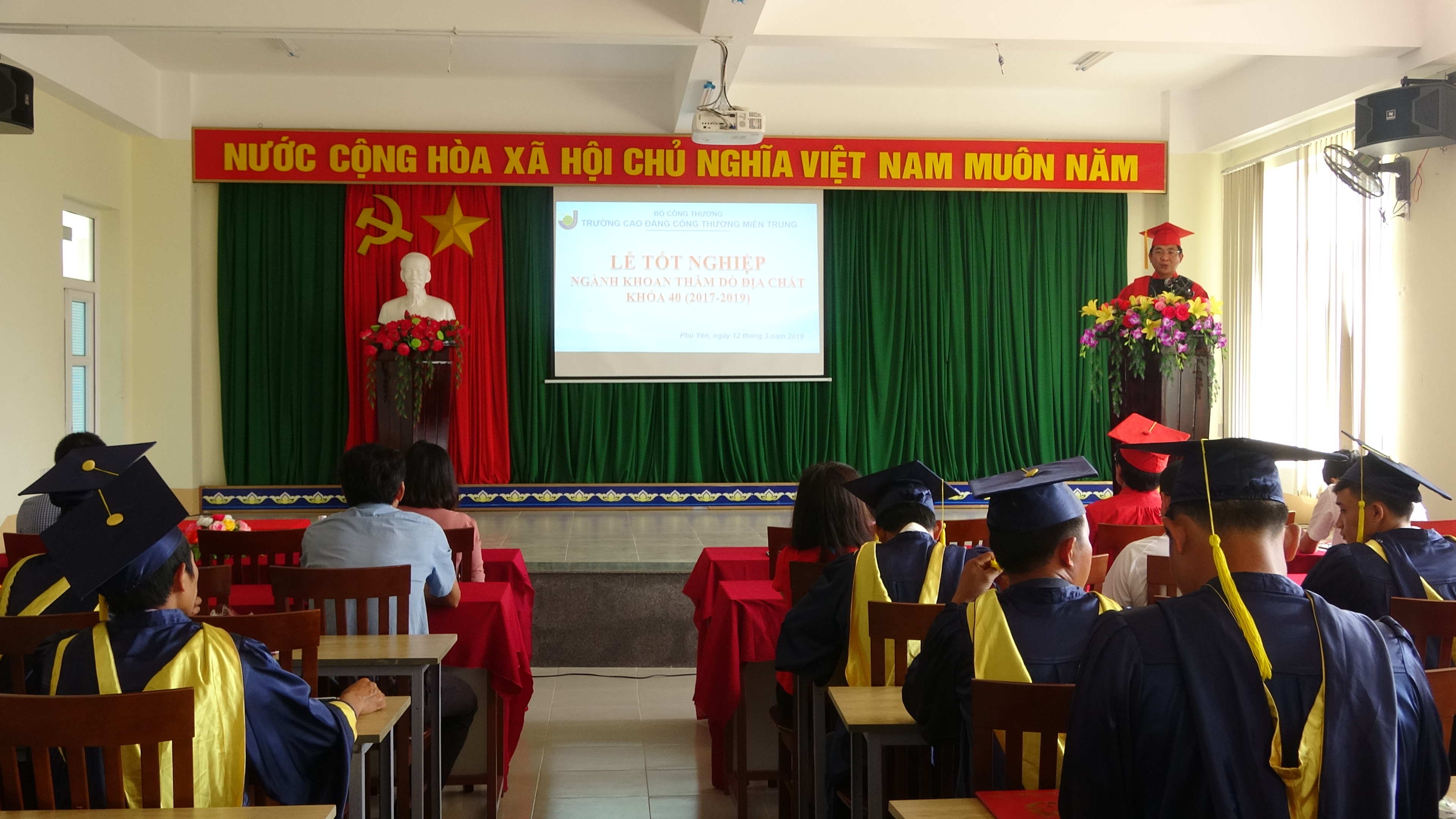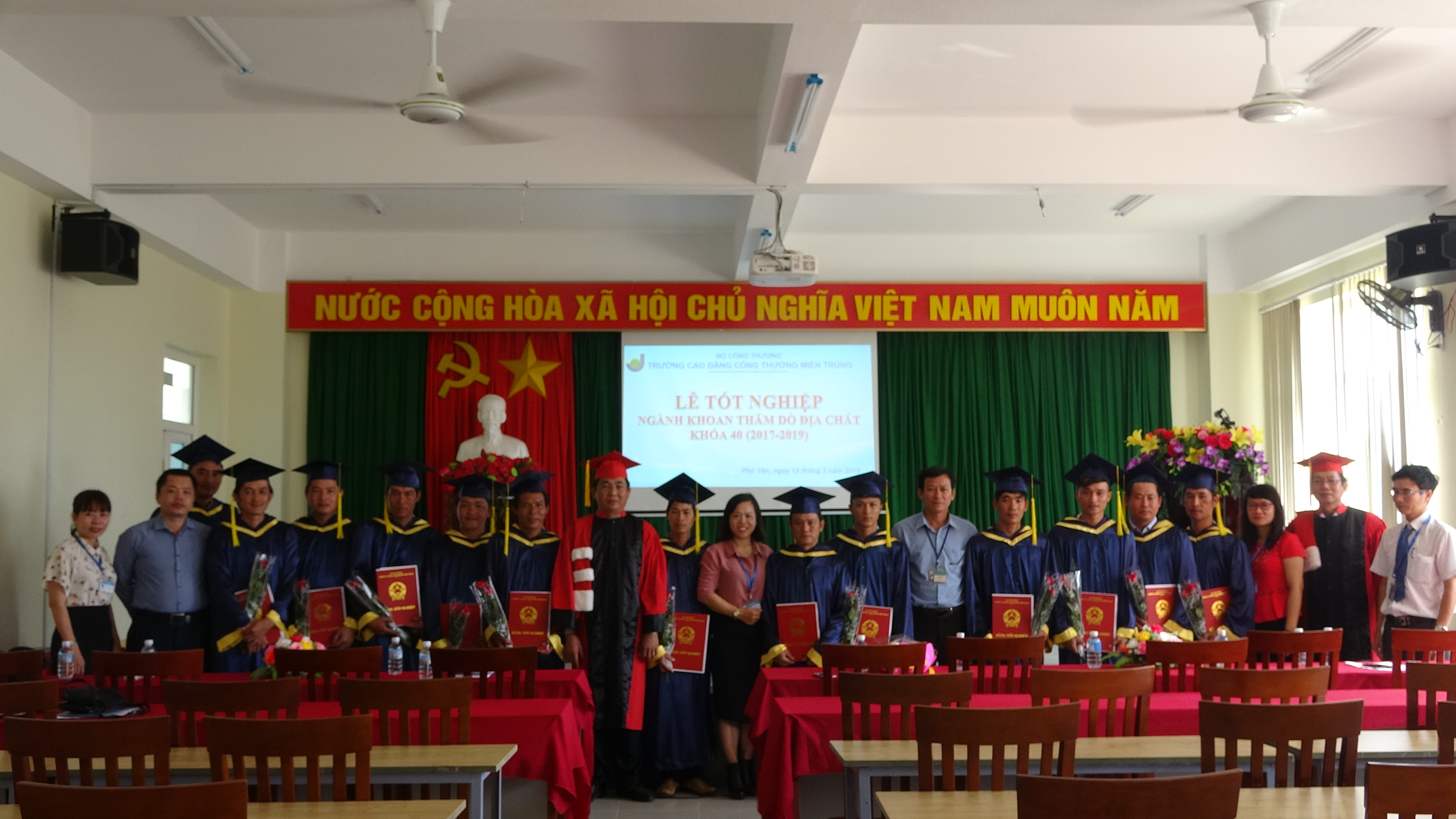 Sáng ngày 12/3/2019, tại Hội Trường B2 cơ sở 2 Trường Cao đẳng Công Thương miền Trung đã long trọng tổ chức lễ tốt nghiệp bậc Trung cấp ngành Khoan thăm dò địa chất khóa 40 (2017-2019).