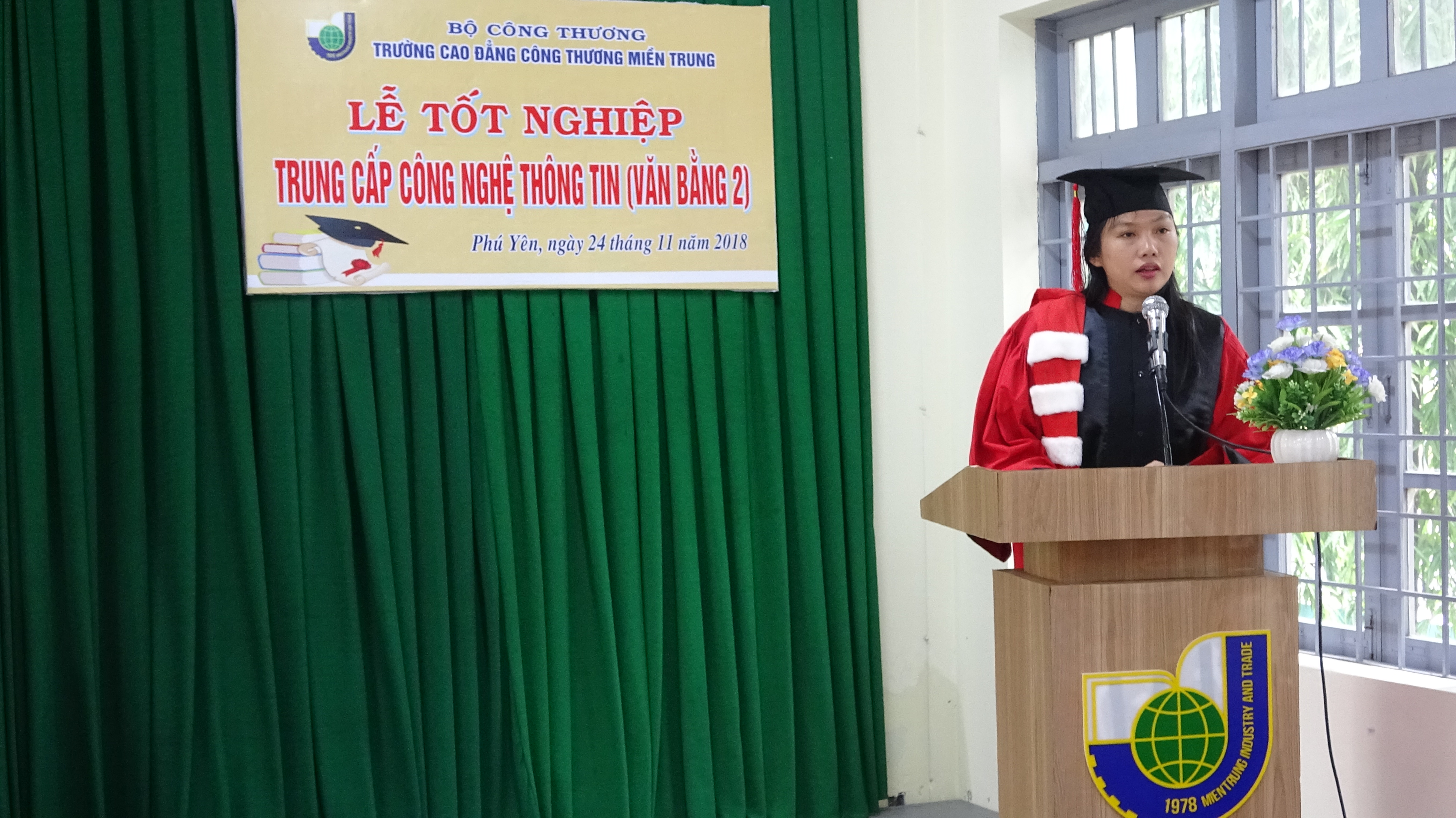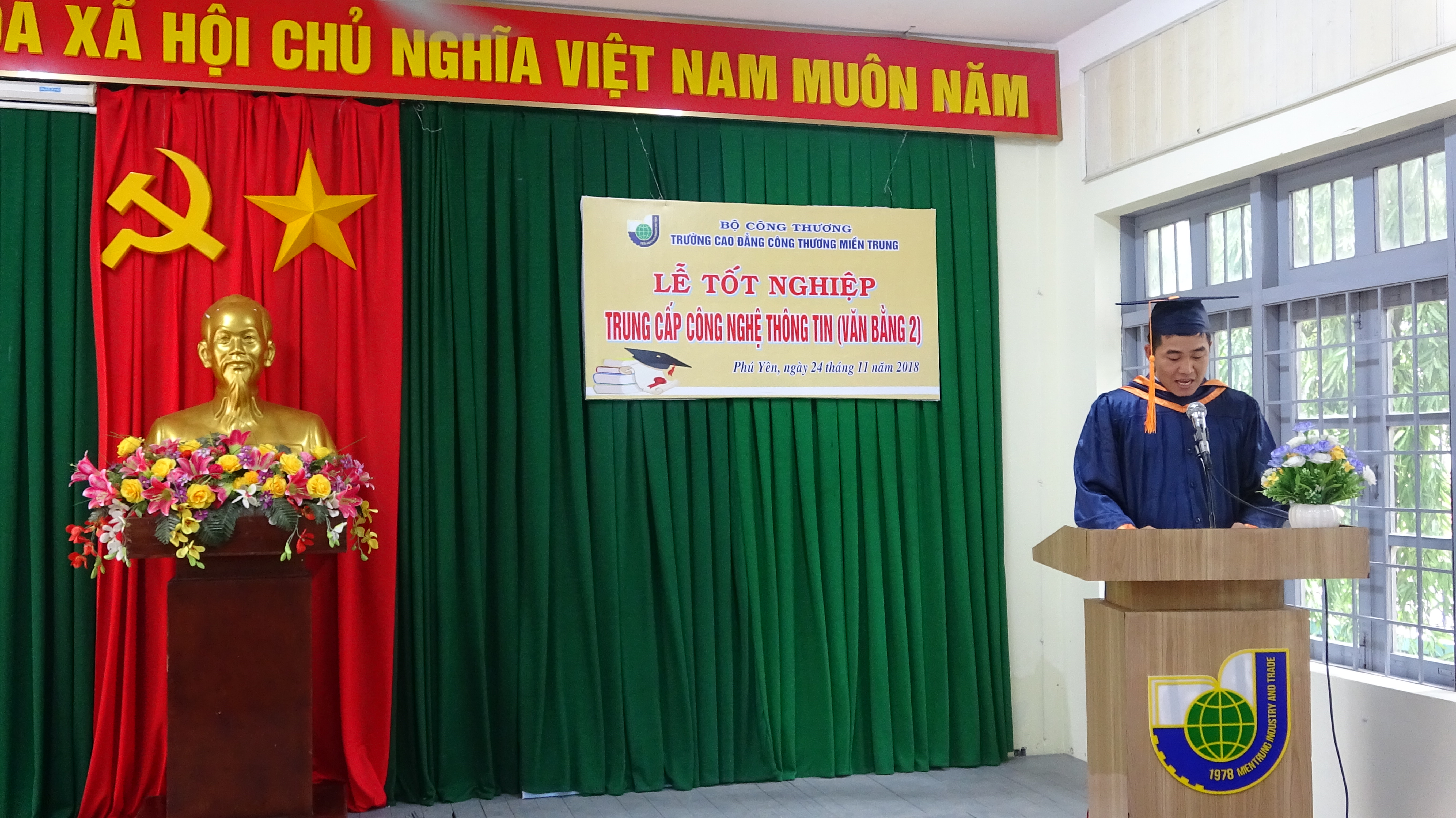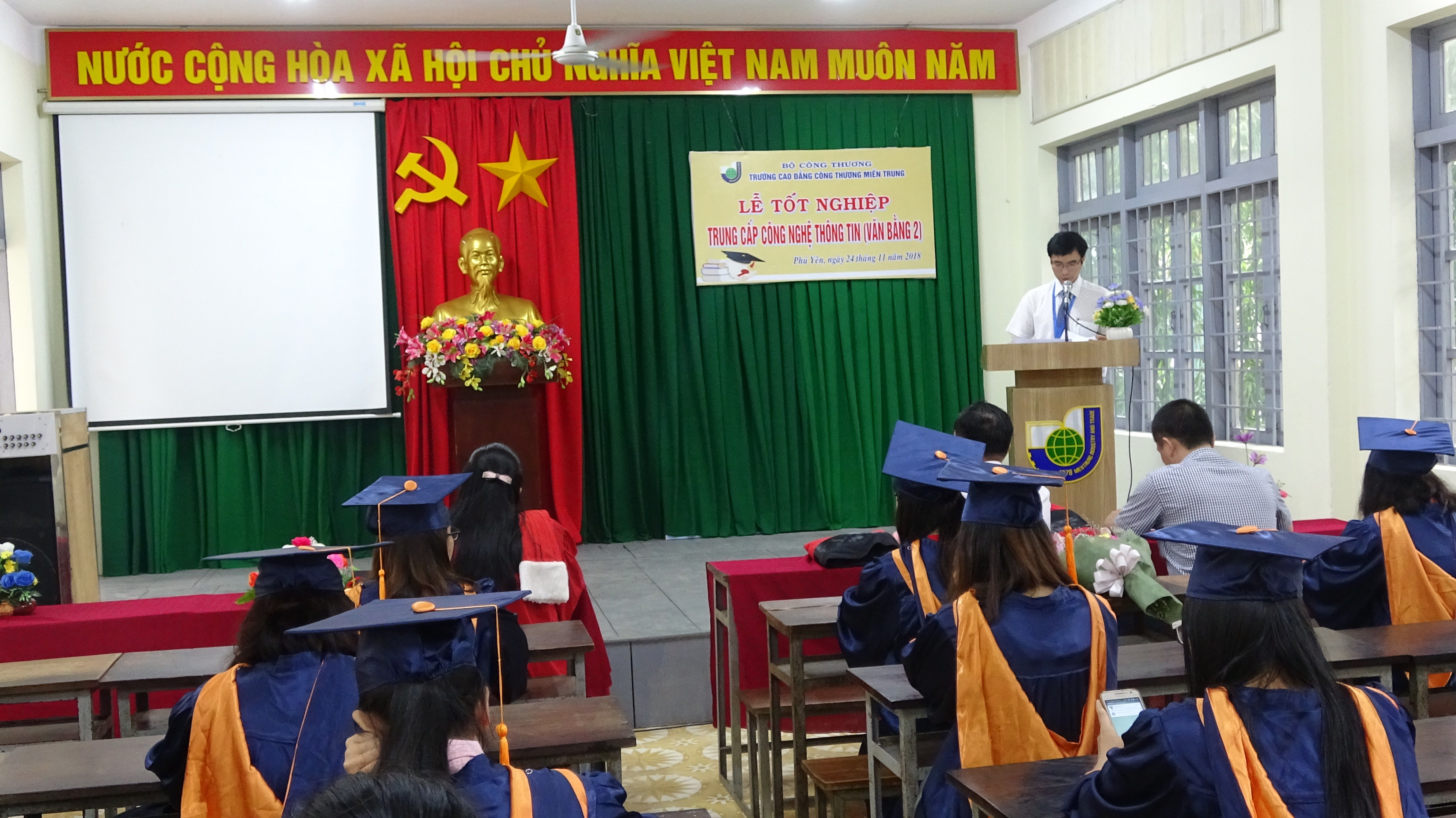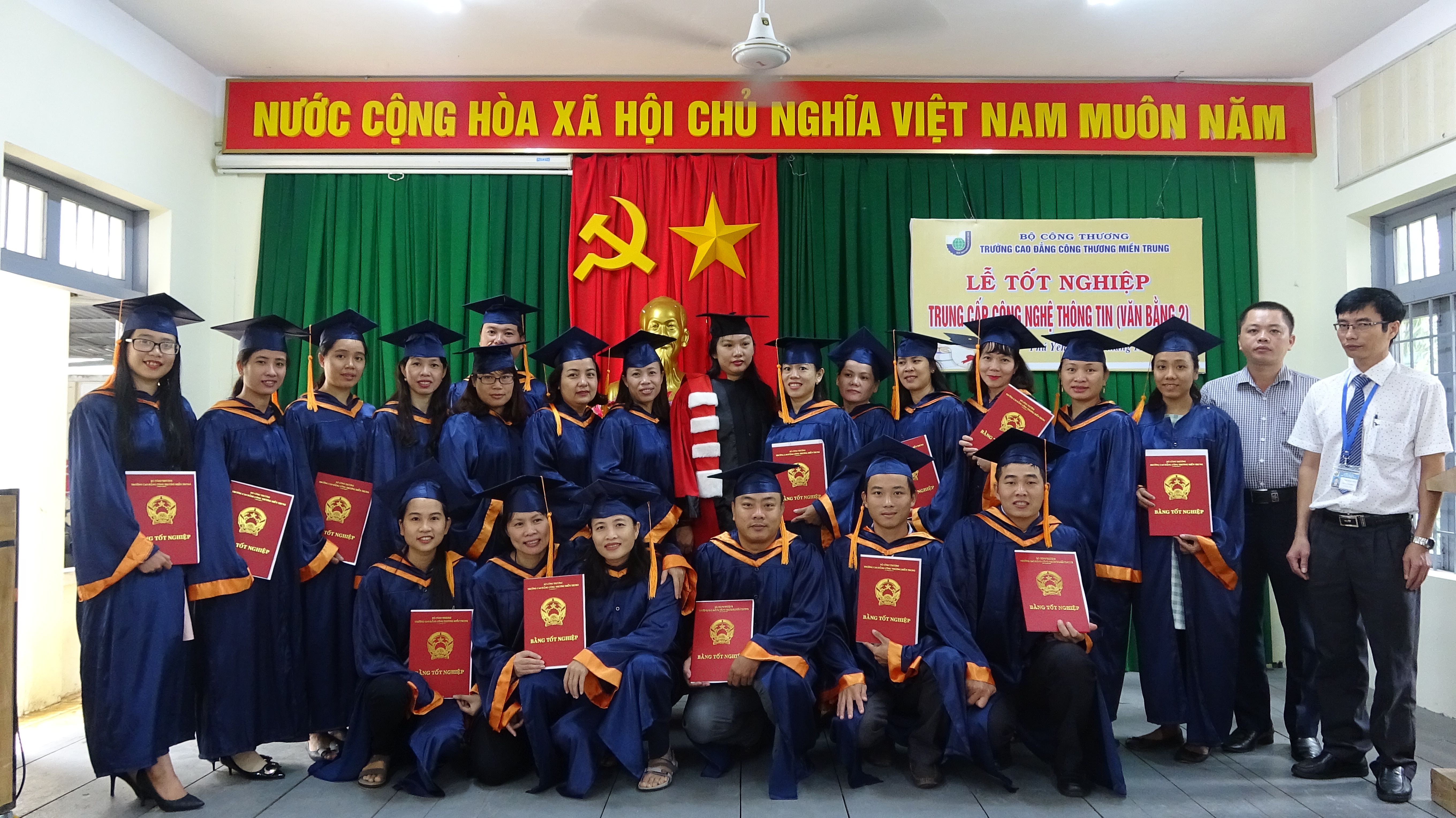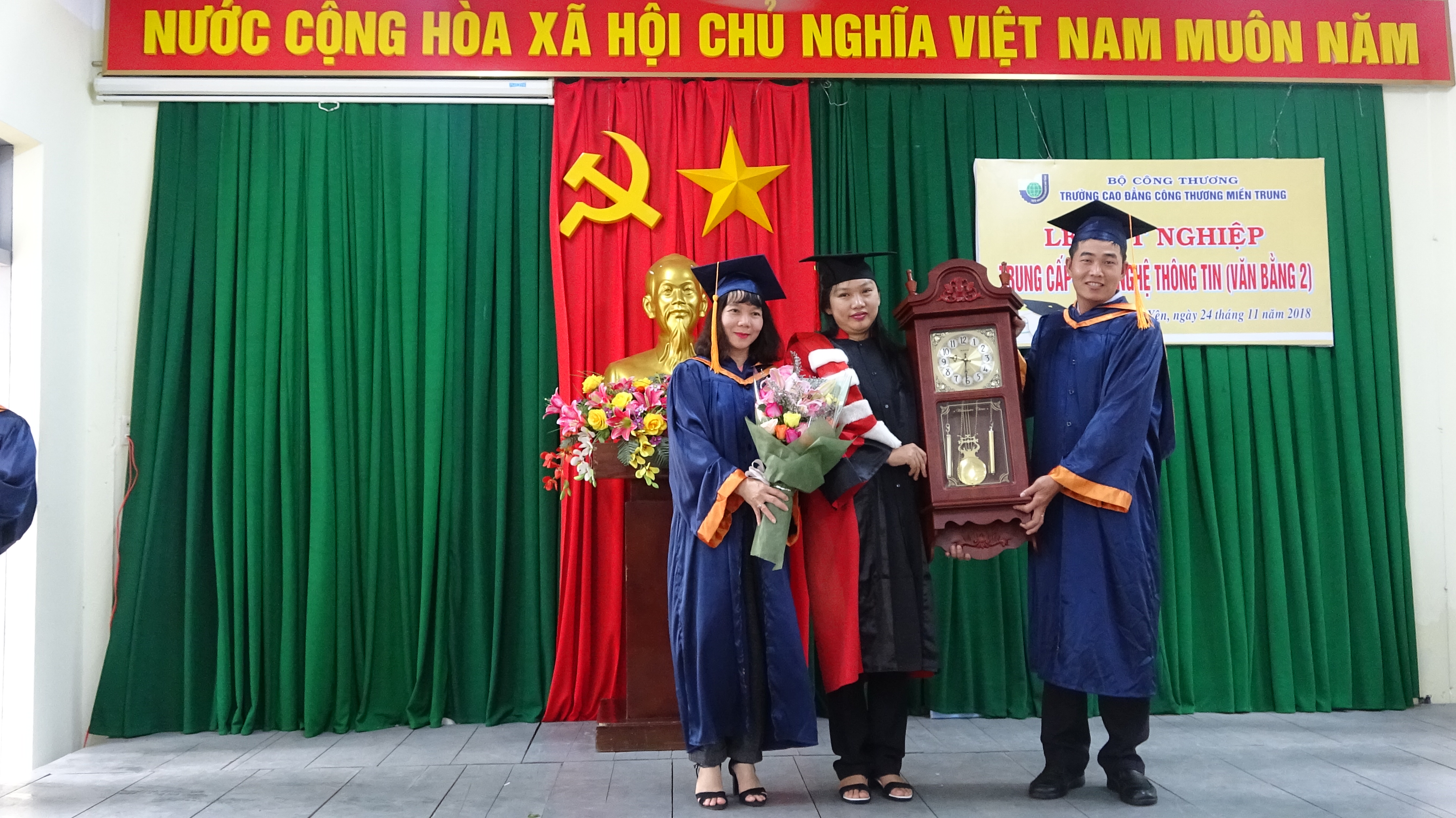 Ngày 24/11/2018, tại Hội trường 101A2 cơ sở 1, Trường Cao đẳng Công Thương miền Trung đã tổ chức Lễ trao bằng tốt nghiệp Trung cấp khóa 40 hệ văn bằng 2 chính quy ngành Công nghệ Thông tin cho 41 học viên.