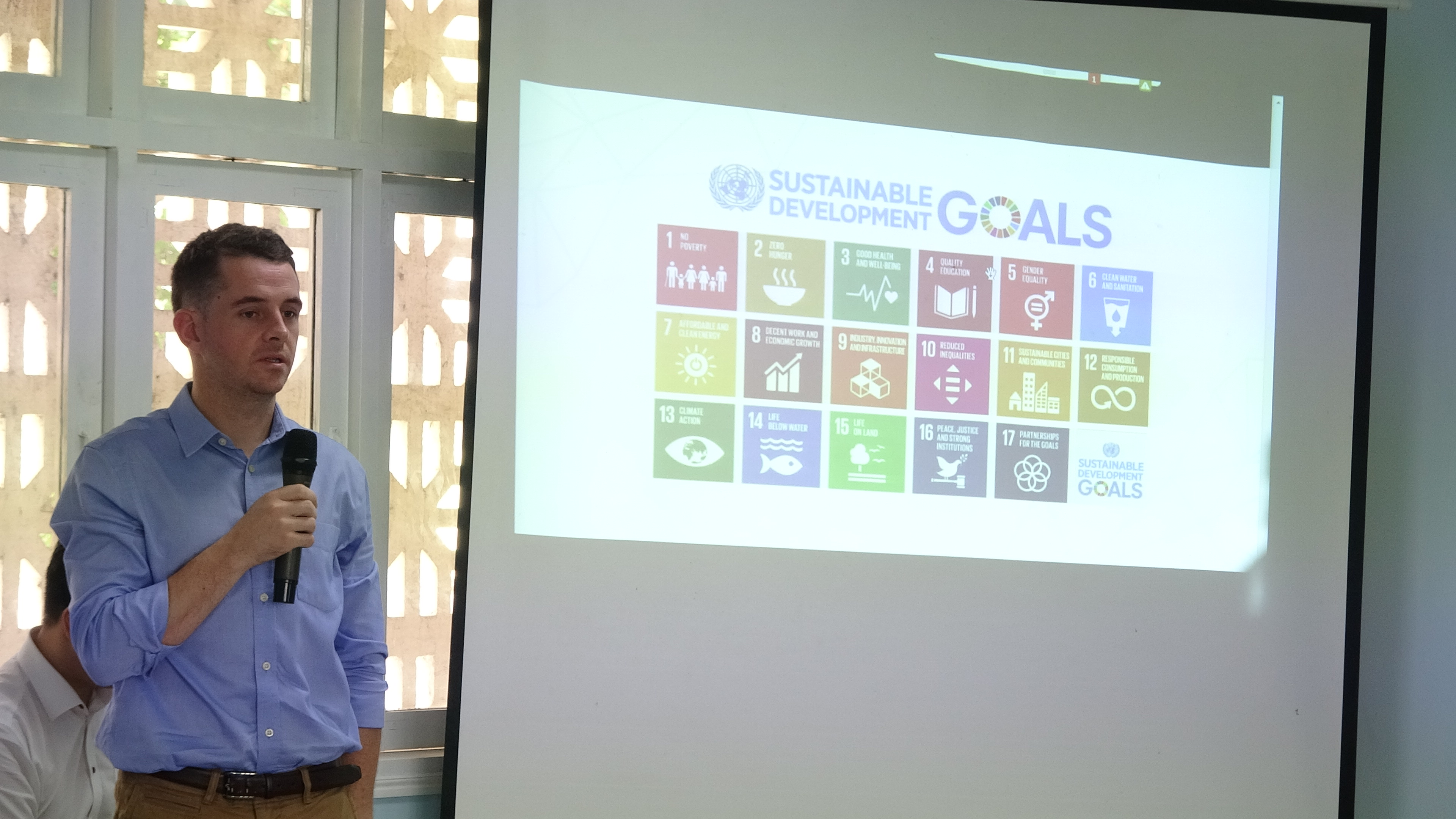 Ông Sean O’Connell, Chuyên gia UNDP báo cáo tại khóa đào tạo