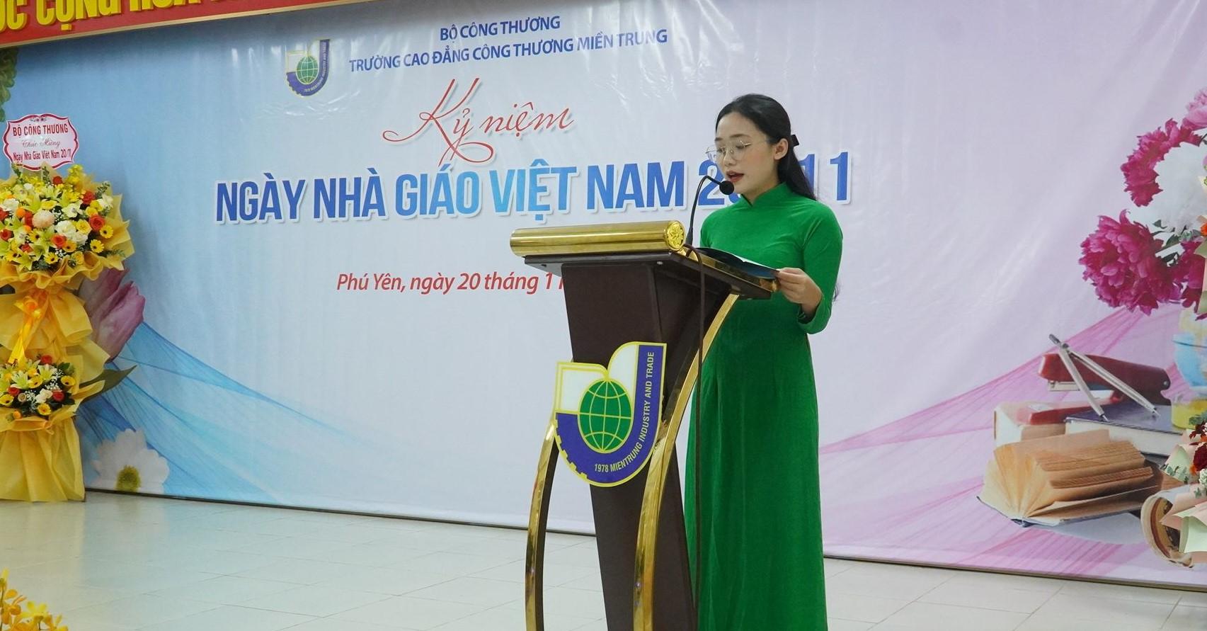 Chương trình kỷ niệm 41 năm Ngày Nhà giáo Việt Nam được tổ chức hàng năm tại Trường Cao đẳng Công Thương miền Trung với ý nghĩa tôn vinh và tri ân những lãnh đạo, nguyên lãnh đạo, cán bộ giảng viên, nhà giáo đã và đang công tác tại trường. Đây là một ngày lễ lớn để thầy và trò nhìn lại những kết quả, thành tích đã đạt được của Nhà trường trong một năm vừa qua.