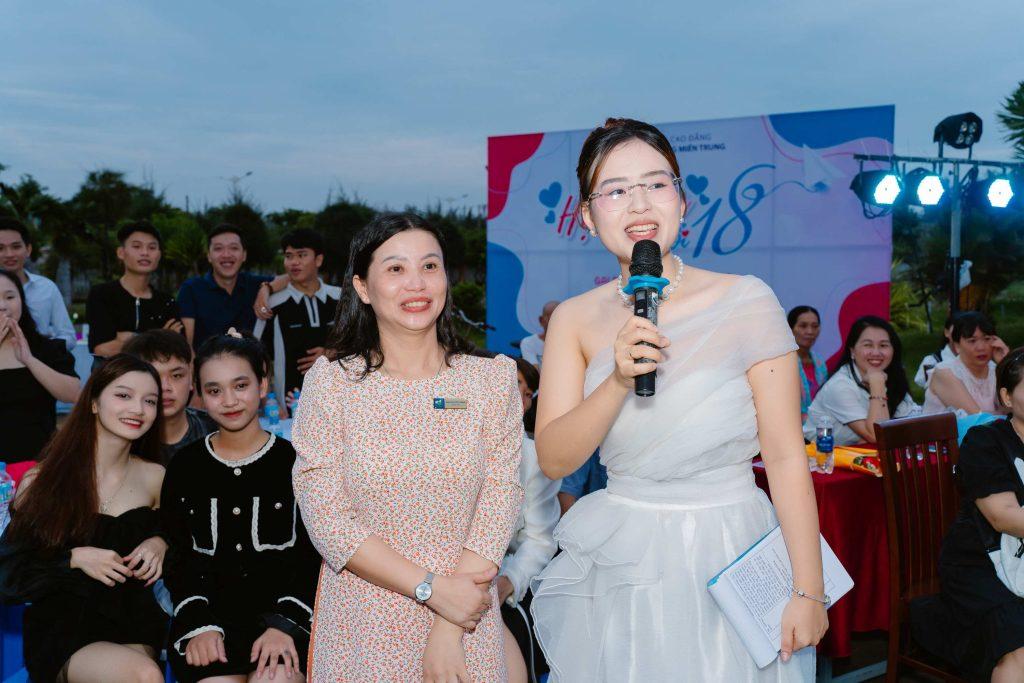 Trong bài phát biểu, Cô Nguyễn Thị Hồng, đại diện phụ huynh học sinh gửi lời cảm ơn chân thành tới Ban Giám hiệu Nhà trường, các thầy cô giáo với vai trò vừa làm thầy trao kiến thức vừa làm ba mẹ thứ hai dạy dỗ các em nên người. Cô cảm thấy rất tự hào khi chứng kiến sự trưởng thành từng ngày của con trai của mình khi học chương trình 9+ tại ngôi trường Cao đẳng Công Thương miền Trung này.