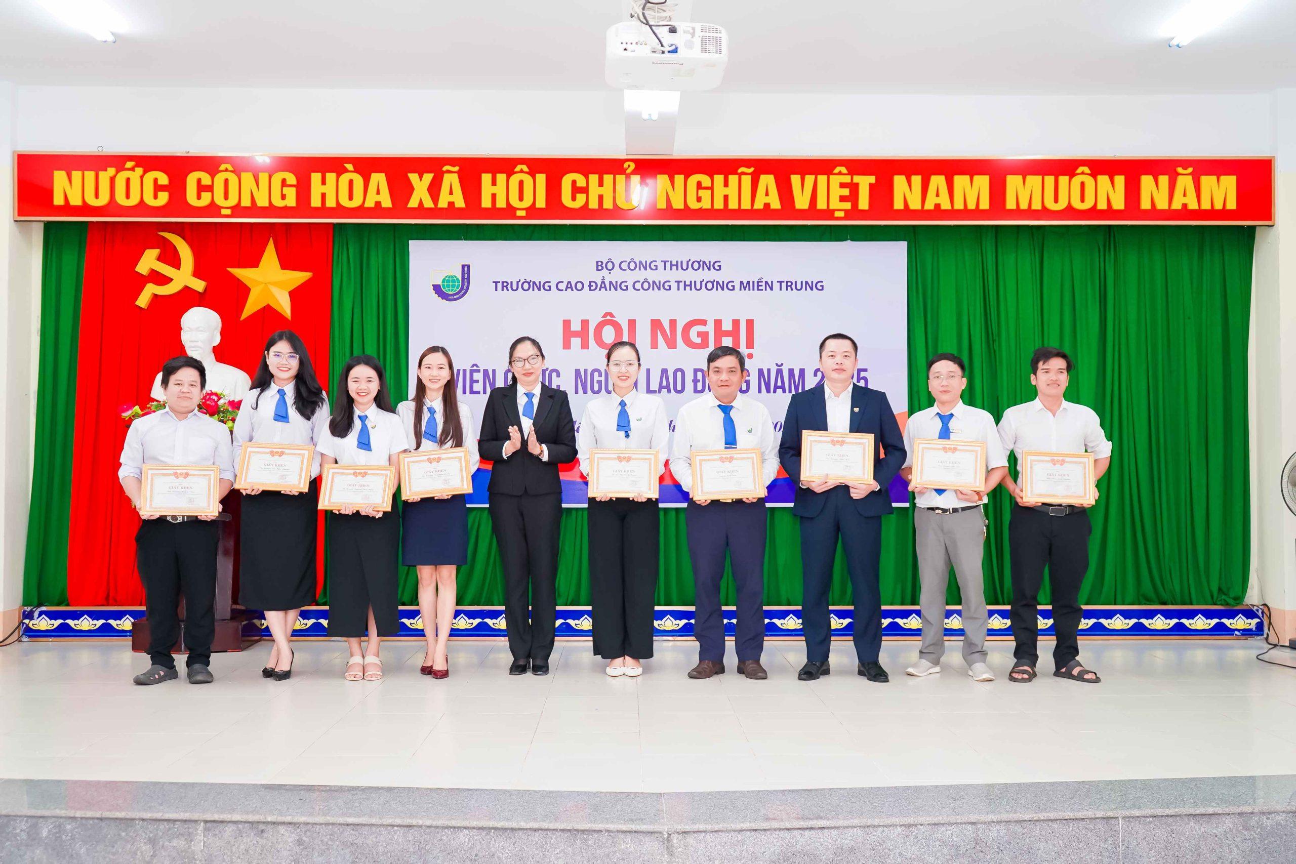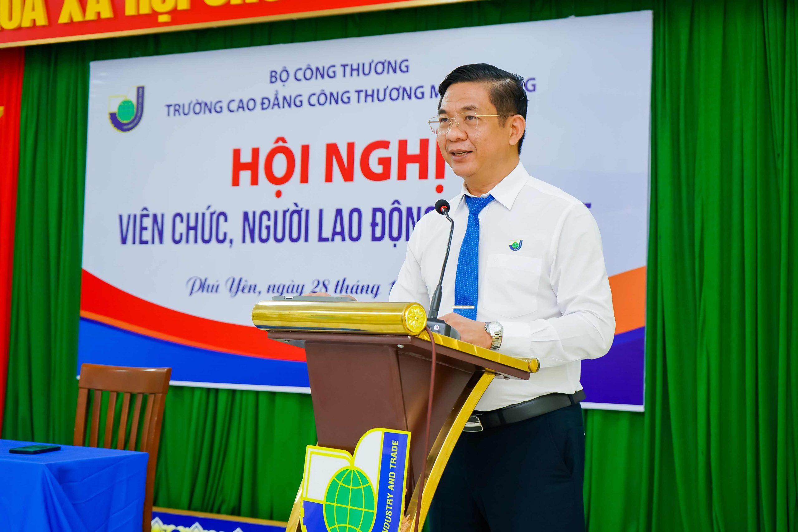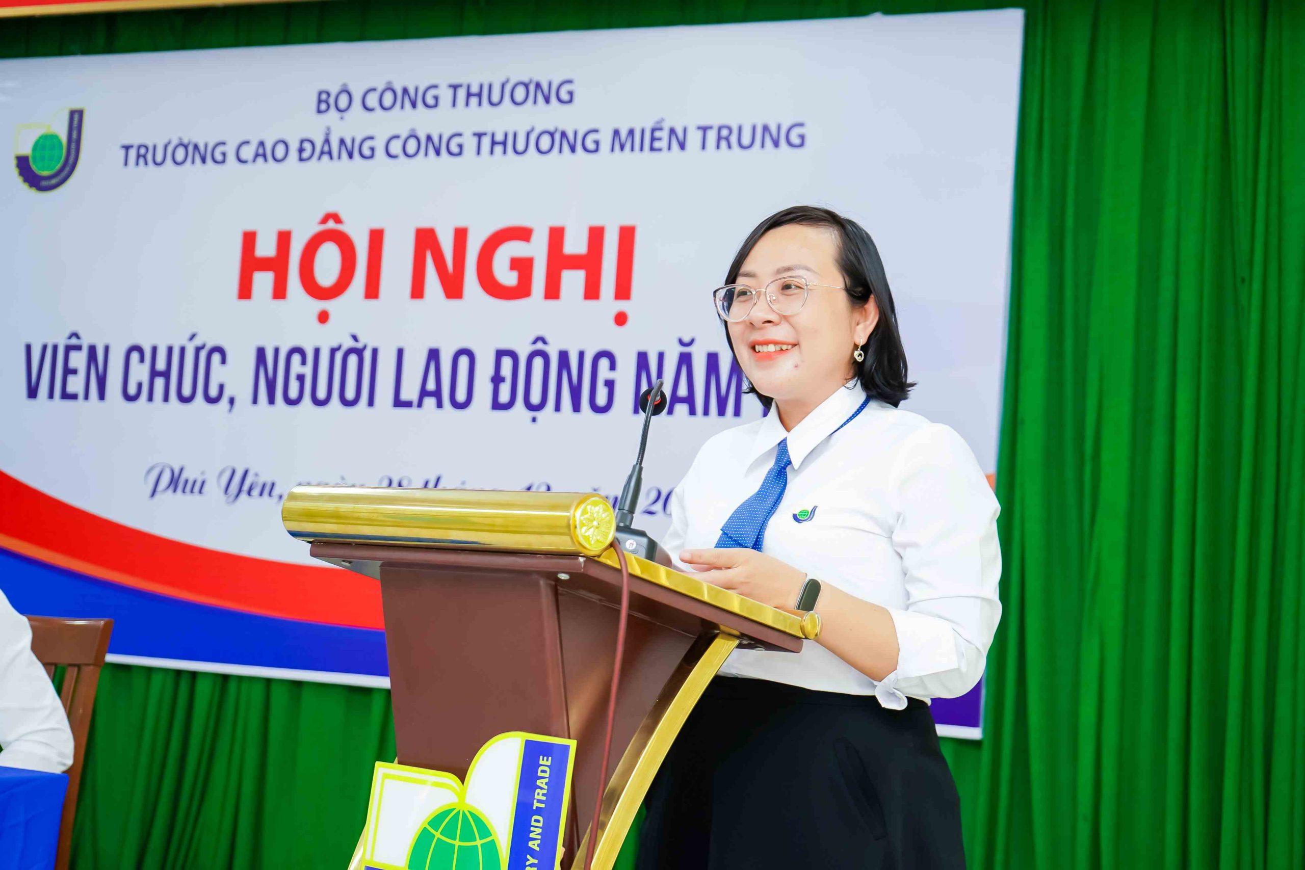 Tham dự hội nghị có TS. Trần Kim Quyên, Bí thư Đảng ủy, Chủ tịch Hội đồng trường, Hiệu trưởng Nhà trường – Chủ trì Hội nghị, BGH; Trưởng phó các đơn vị và toàn thể viên chức và người lao động hiện đang công tác tại trường Cao đẳng Công Thương miền Trung.
