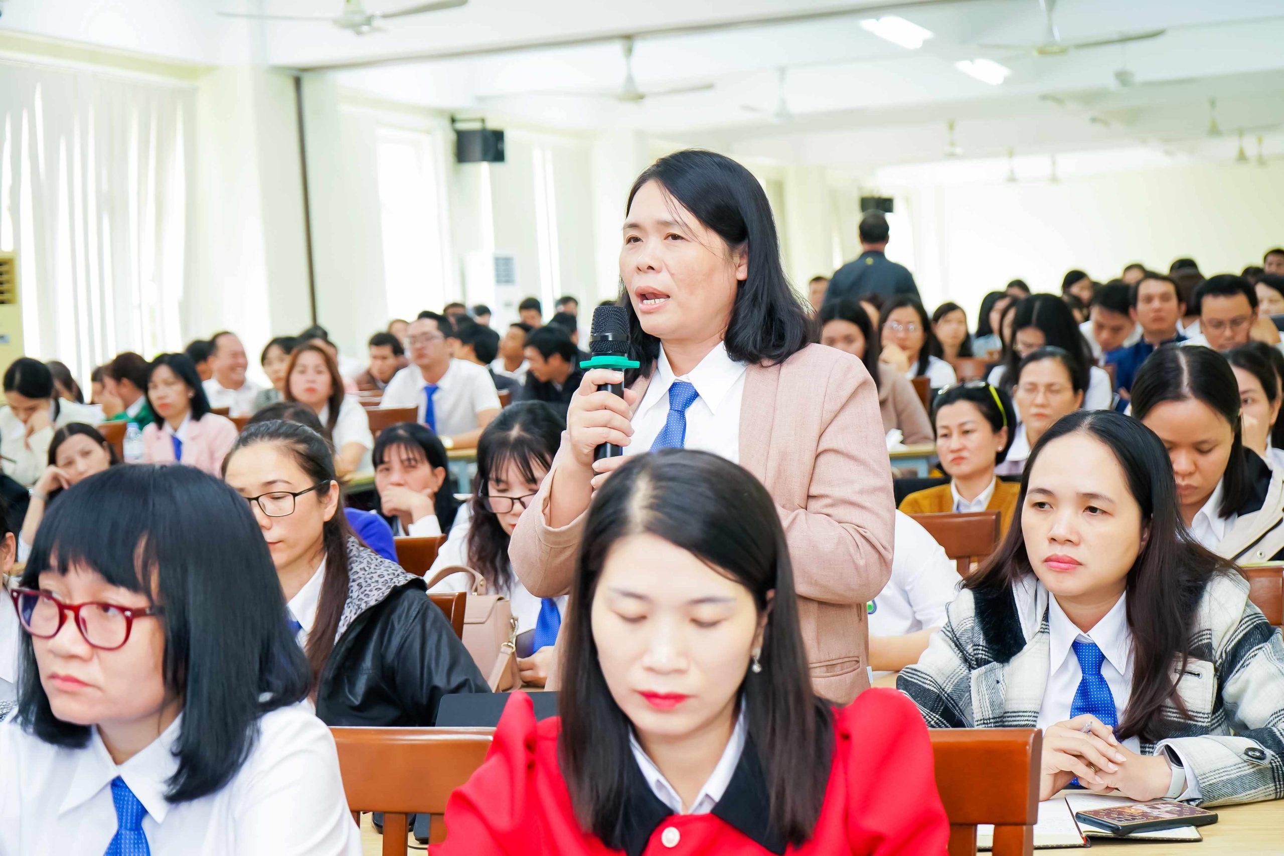 Đồng thời, Tiến sĩ Trần Kim Quyên – Hiệu trưởng Nhà trường cũng đã đại diện cho tập thể lãnh đạo Nhà trường trình bày các nội dung như: Kiểm điểm việc thực hiện đường lối, chủ trương của Đảng, chính sách, pháp luật của Nhà nước và trách nhiệm của người đứng đầu trong việc thực hiện kế hoạch công tác năm 2024; Giải trình các ý kiến đóng góp xây dựng Quy chế chi tiêu Nội bộ và các ý kiến khác.