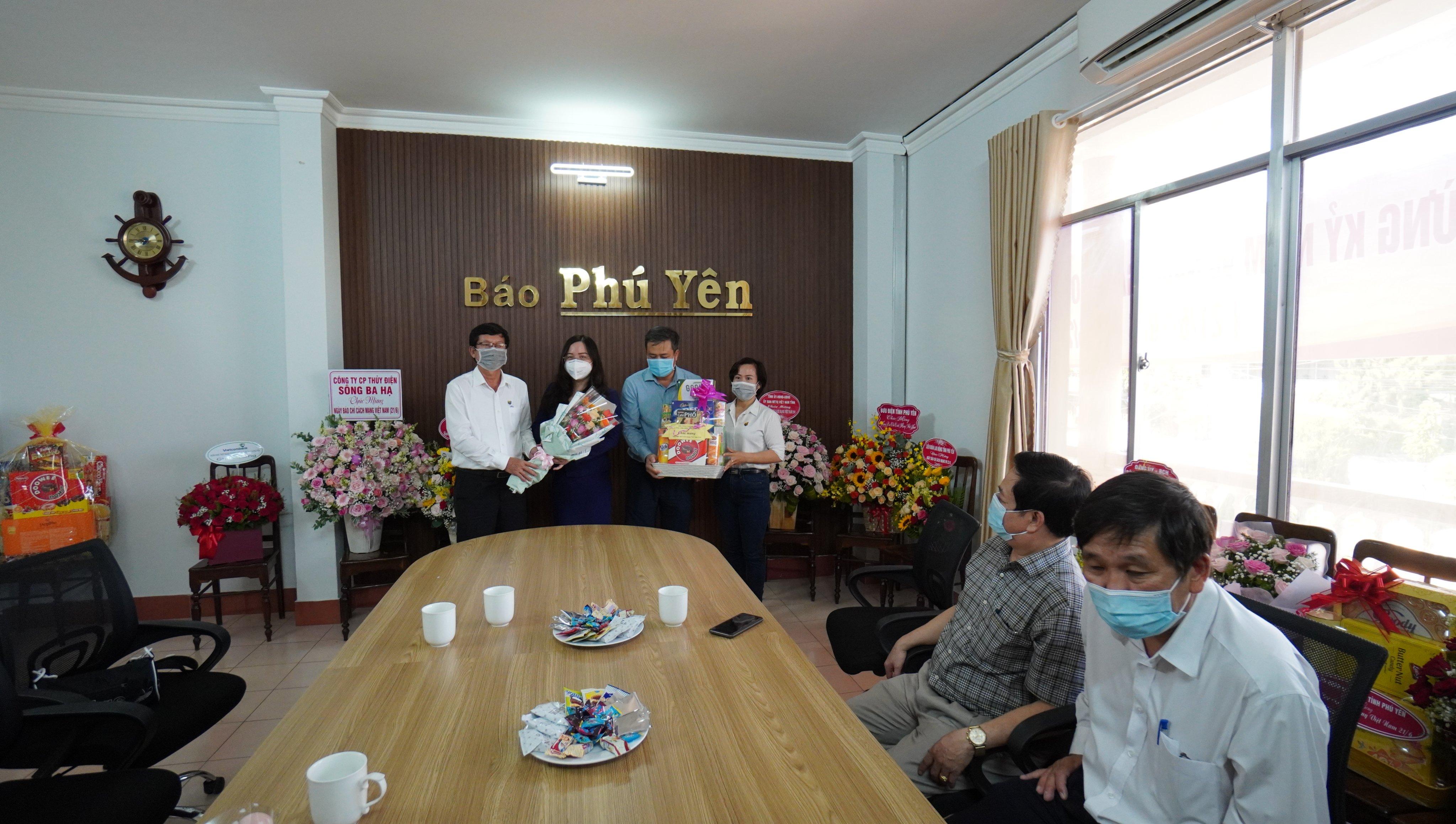 Đoàn tặng quà có Ths. Nguyễn Văn Đức, Phó Hiệu trưởng nhà trường (trưởng đoàn); Ths. Cao Thị Nhung, Chủ tịch Công đoàn trường, Ths. Nguyễn Thị Thu Nhuần- giám đốc Trung tâm Ươm tạo và Đổi mới sáng tạo đã đến thăm và tặng quà tại Trung tâm truyền hình Việt Nam khu vực Miền Trung& Tây Nguyên VTV8, tòa soạn Báo Phú Yên và Đài Phát thanh Truyền hình tỉnh Phú Yên PTP. Thay mặt cho tập thể CBVC nhà trường, Ths. Nguyễn Văn Đức đã gởi những lời chúc mừng tốt đẹp nhất cùng tình cảm thân thiết quý trọng đến toàn thể cán bộ truyền thông, đội ngũ nhà báo tại các cơ quan.