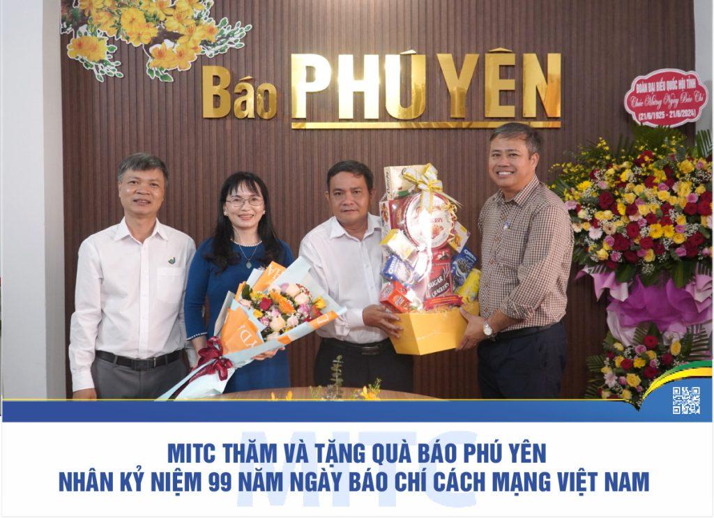 Ngày 20/06/2023, nhân kỷ niệm 99 năm Ngày Báo chí Cách mạng Việt Nam (21/6/1925 – 21/6/2024), trường Cao đẳng Công Thương miền Trung (MITC) đã tổ chức thăm, tặng quà và hoa mừng tại Đài Phát thanh Truyền hình tỉnh Phú Yên PTP và Tòa soạn Báo Phú Yên. Đoàn tặng quà có TS. Lê Kim Anh, Phó Hiệu trưởng Nhà trường và Ths. Nguyễn Thanh Thuyền – Phó Trưởng Phòng Tổ chức hành chính.