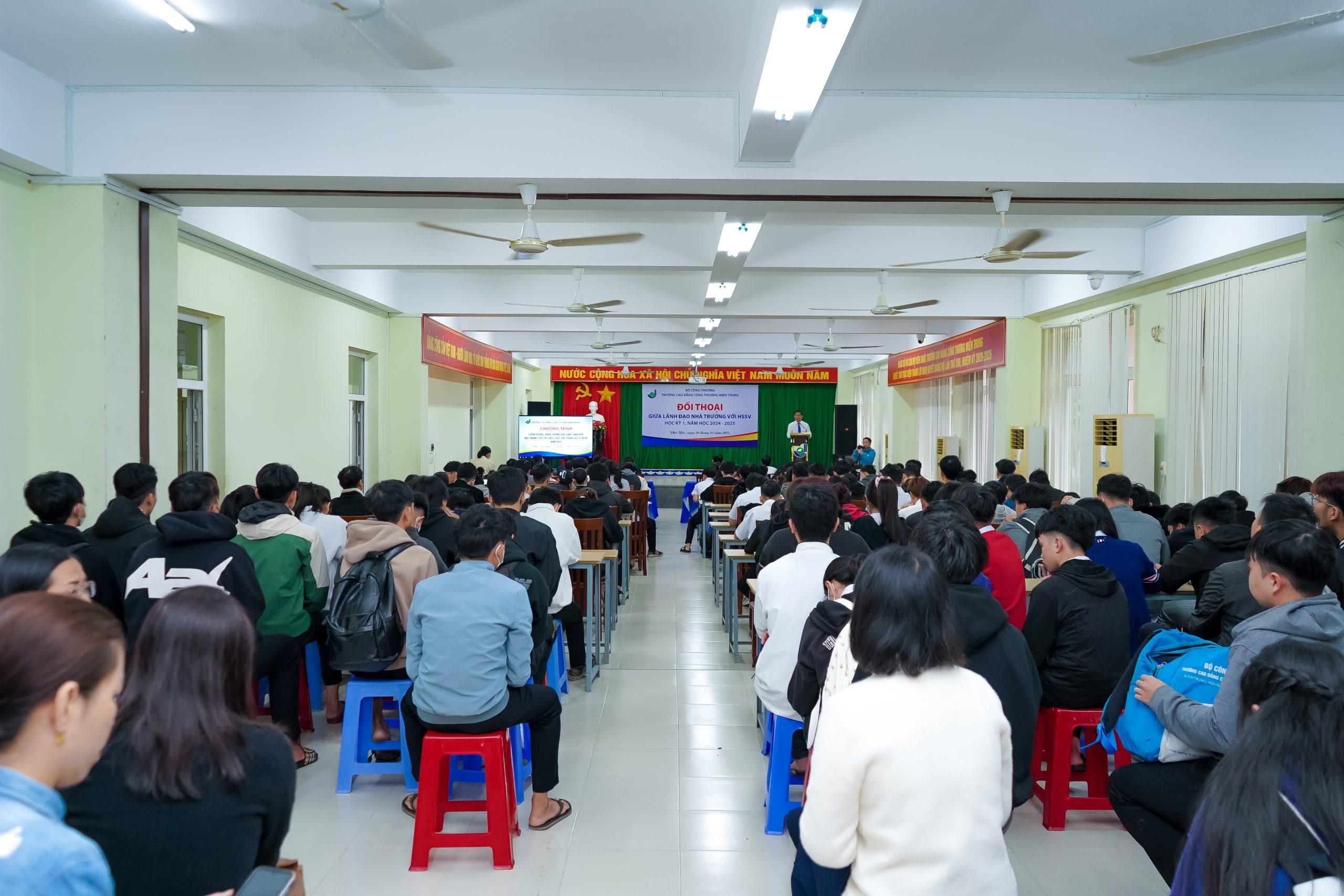 Toàn cảnh buổi tuyên dương khen thưởng và đối thoại giữa lãnh đạo Nhà trường và HSSV