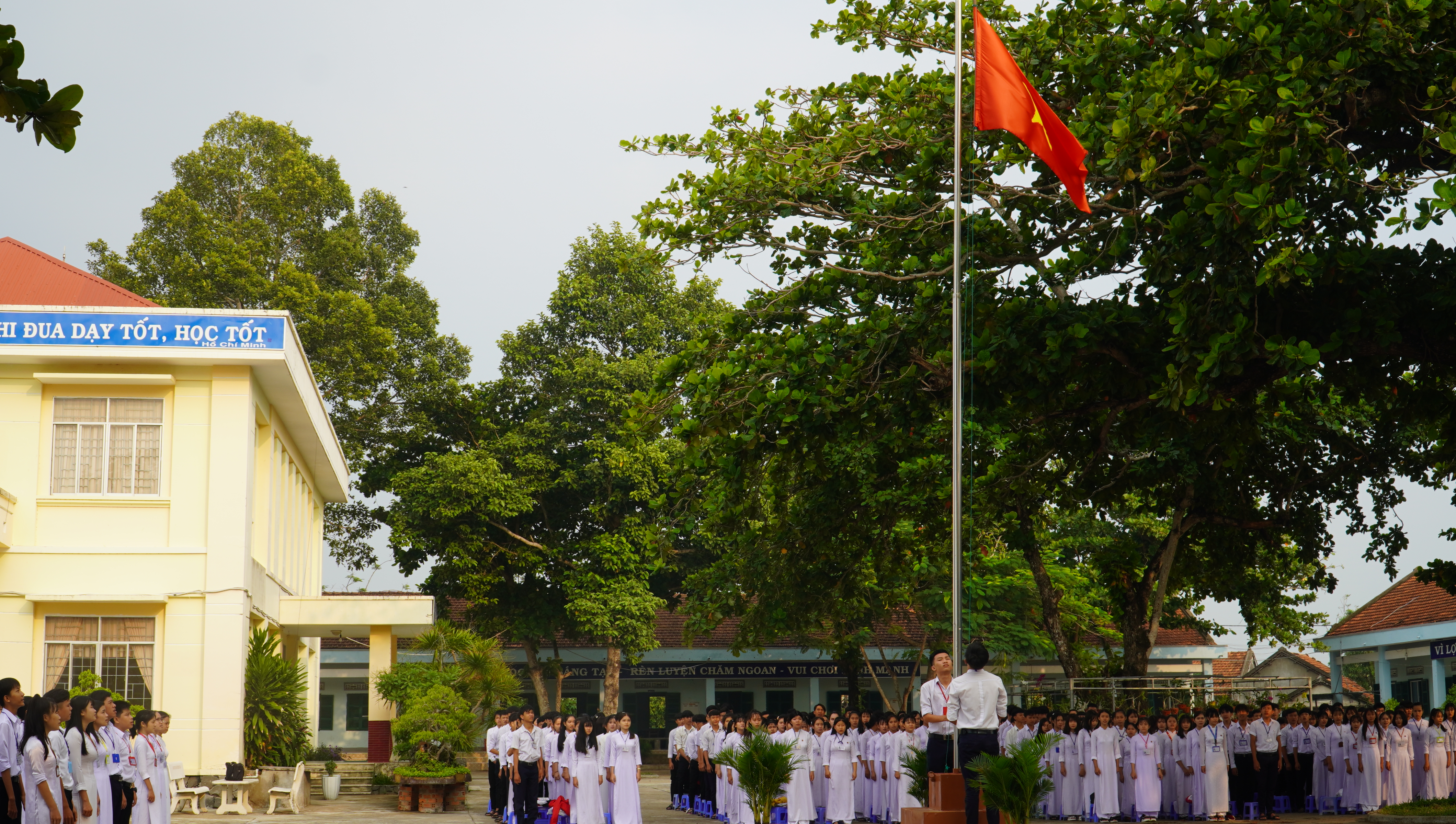 Toàn cảnh Lễ chào cờ Thứ hai đầu tuần của Trường THPT Nguyễn Thị Minh Khai