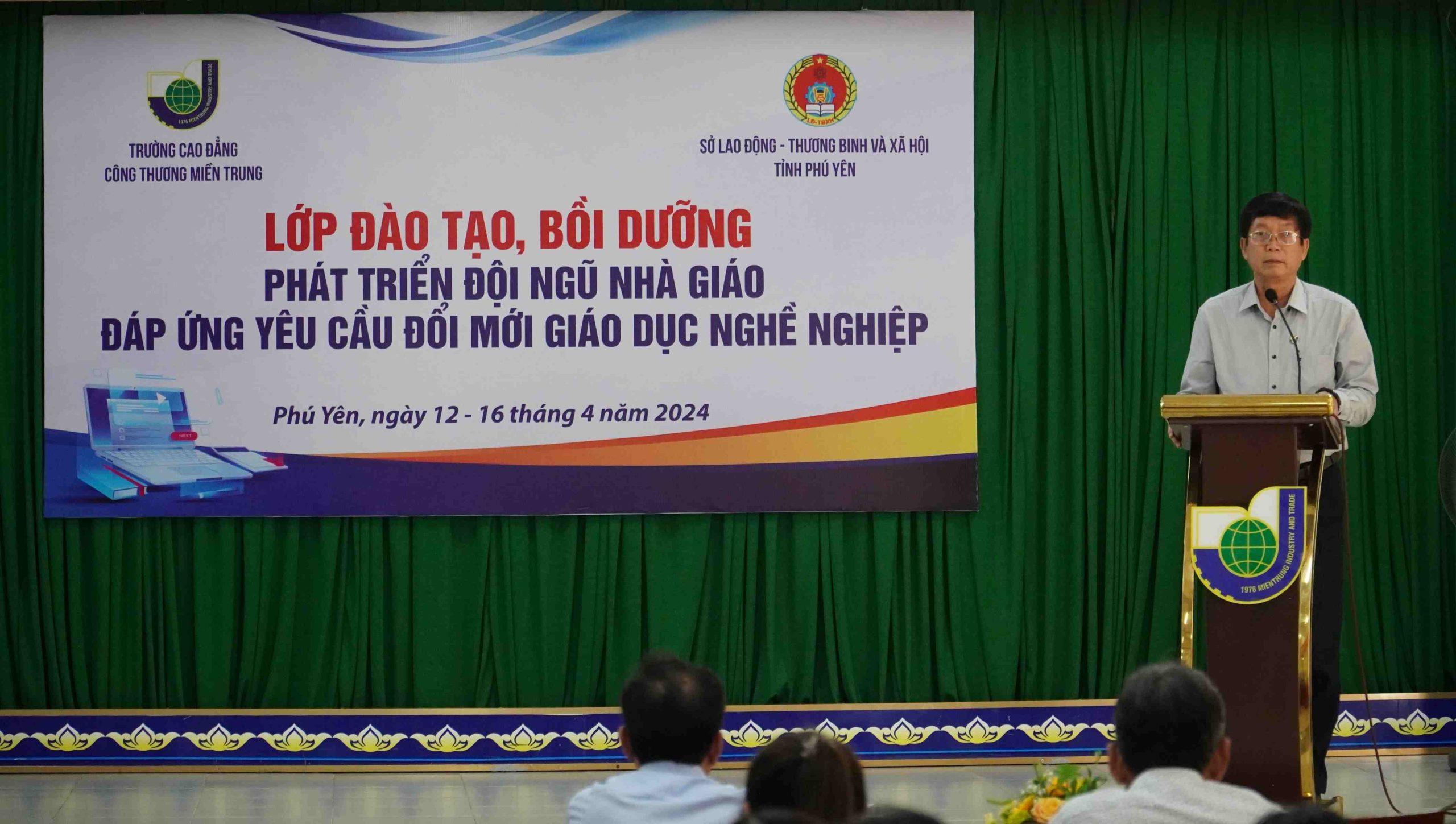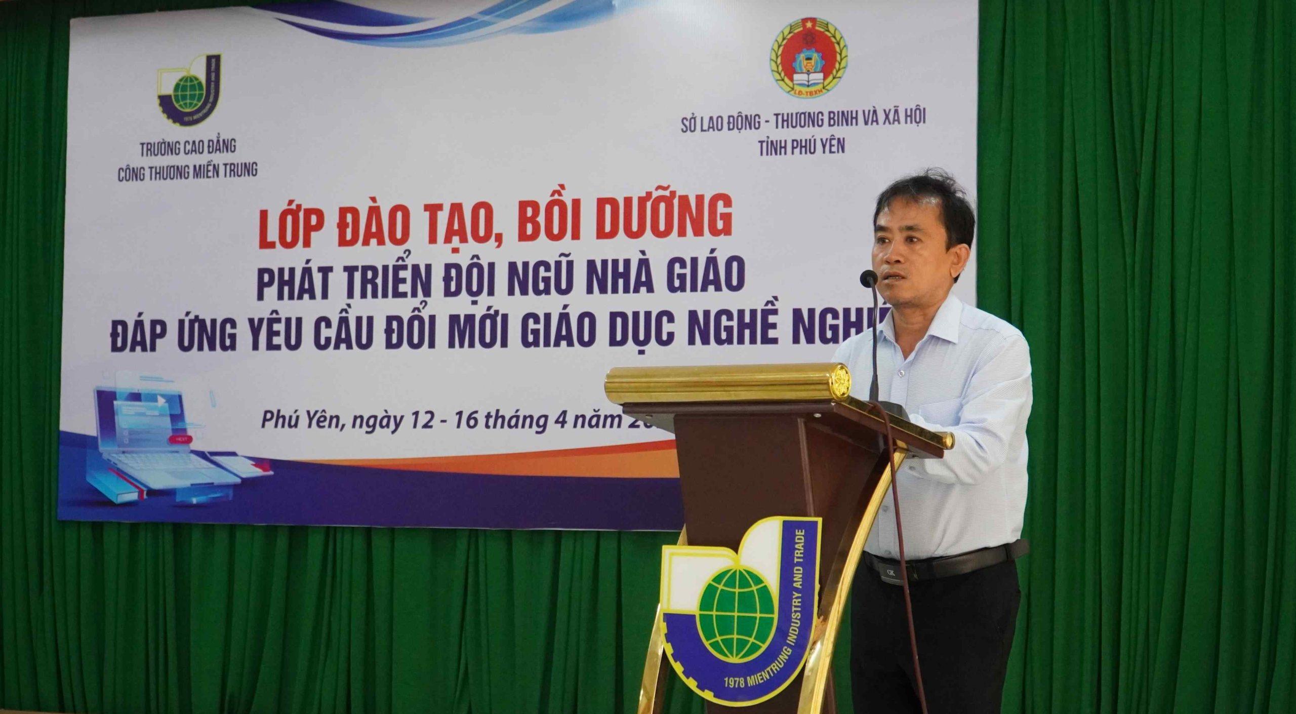 Sáng ngày 12/04, trường Cao đẳng Công Thương miền Trung tổ chức lớp đào tạo, bồi dưỡng “Phát triển đội ngũ nhà giáo đáp ứng yêu cầu đổi mới giáo dục nghề nghiệp”. Tham dự chương trình có Ông Huỳnh Dũng -Trưởng phòng dạy nghề, Sở LĐTBXH, TS. Nguyễn Hữu Hợp – Trưởng khoa Sư phạm kỹ thuật, ĐH Sư phạm kỹ thuật Hưng Yên. Về phía trường Cao đẳng Công Thương miền Trung có Ths. Nguyễn Văn Đức – Phó Bí thư Đảng Ủy, Phó hiệu trưởng. Cùng các giảng viên trường Cao đẳng Công Thương miền Trung và cán bộ làm công tác quản lý đào tạo, các nhà giáo tại các cơ sở Giáo dục nghề nghiệp trên địa bàn tỉnh Phú Yên.