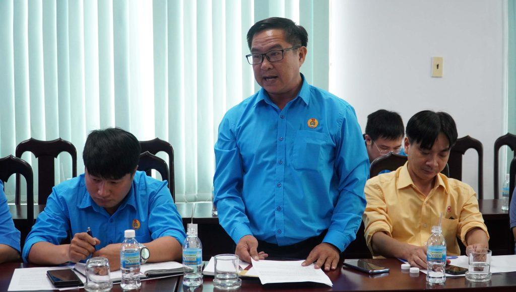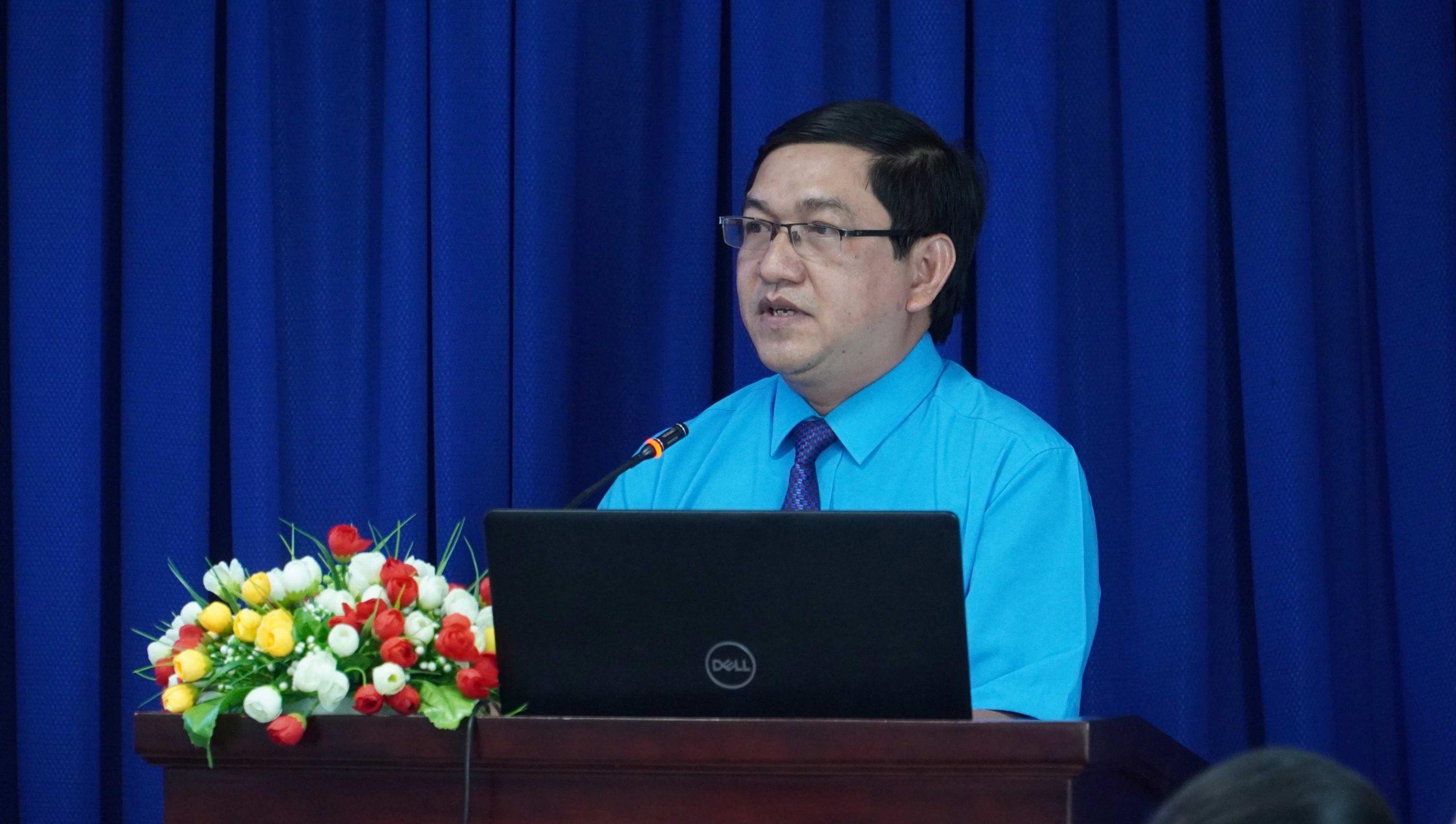 Ông Trần Hồng Minh, Đảng ủy viên, Chánh VP Sở, Ủy viên Ban Chấp hành LĐLĐ tỉnh, Chủ tịch CĐN Công Thương Khánh Hòa – Phát biểu khai mạc buổi Tọa đàm