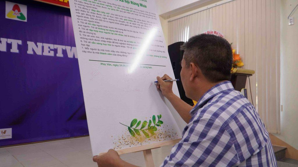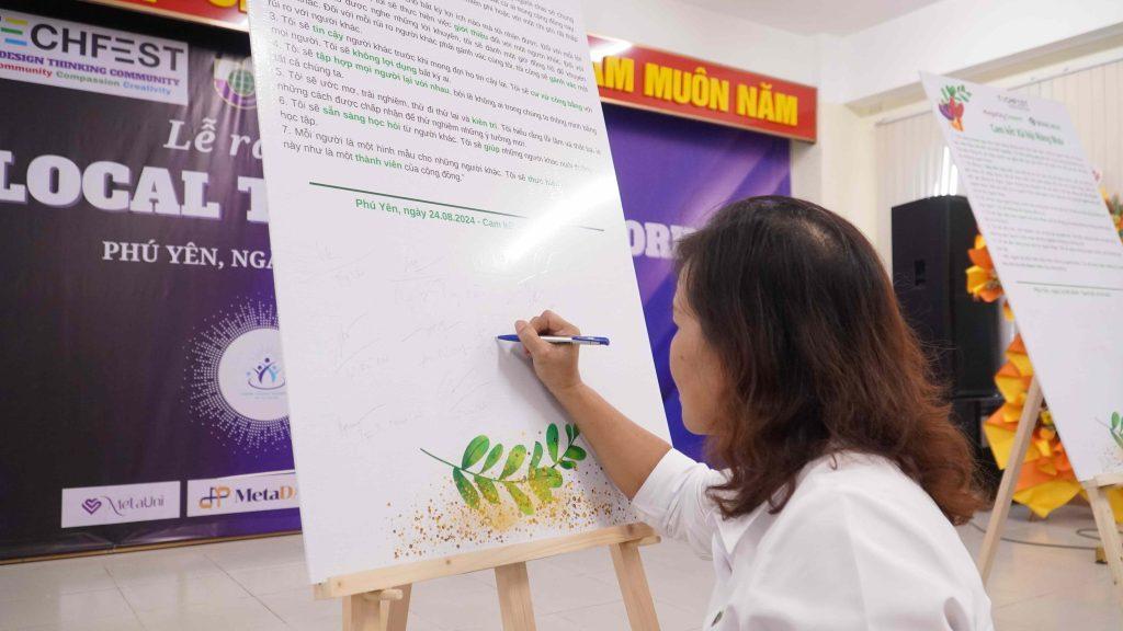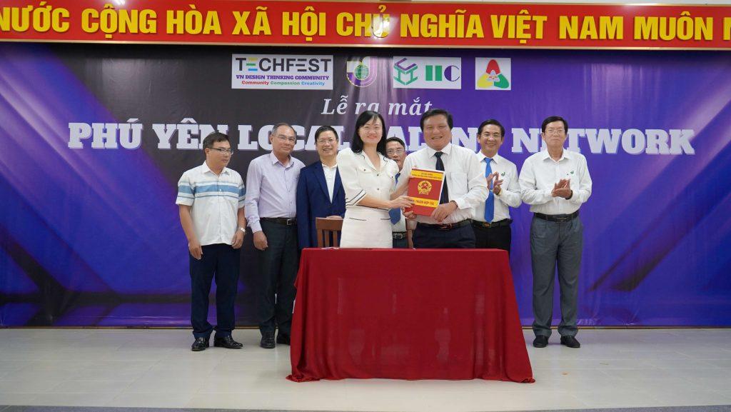 Về phía làng Design Thinking có: Bà Dương Tường Nhi – Trưởng làng Design Thinking, nhà sáng lập Việt Nam Design Thinking Community – Techfest VN, CEO Innovation & Impact Center – IIC; Bà Phạm Thị Thu Thảo – Thành viên Đak Lak Local Talent Network, Chủ DN Cafe Ông giáo; và các thành viên thuộc Phú Yên Local Talent Network.