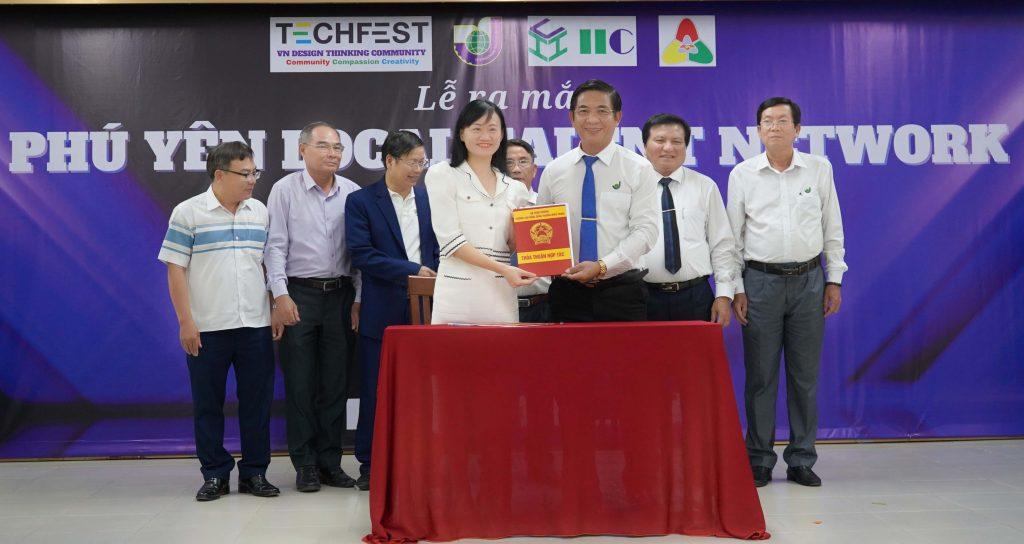 Đại diện làng Design Thinking và đại diện Hiệp hội doanh nghiệp tỉnh Phú Yên cùng đặt bút kí vào bản hợp tác