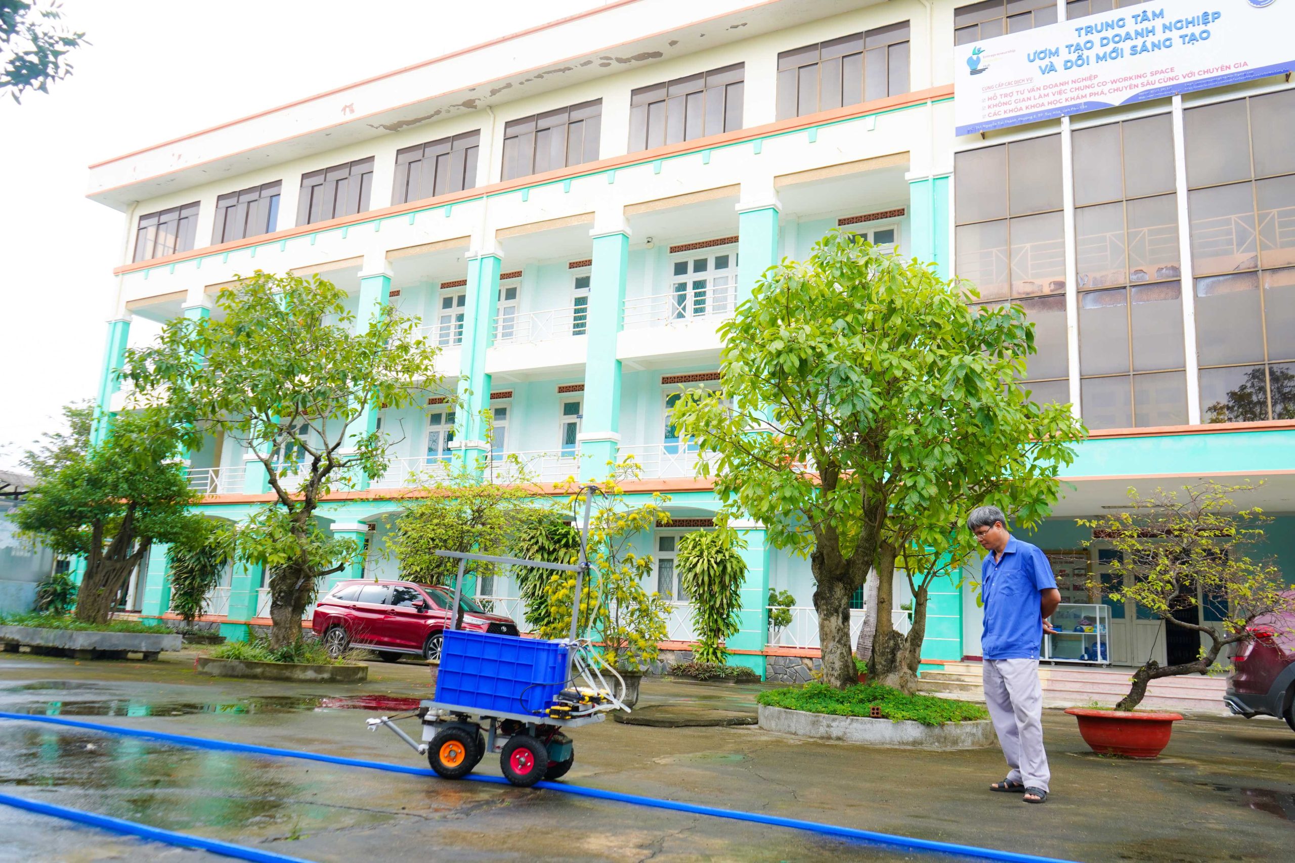 Sản phẩm Robot phun thuốc trừ sâu chạy thực nghiệm tại sân trường