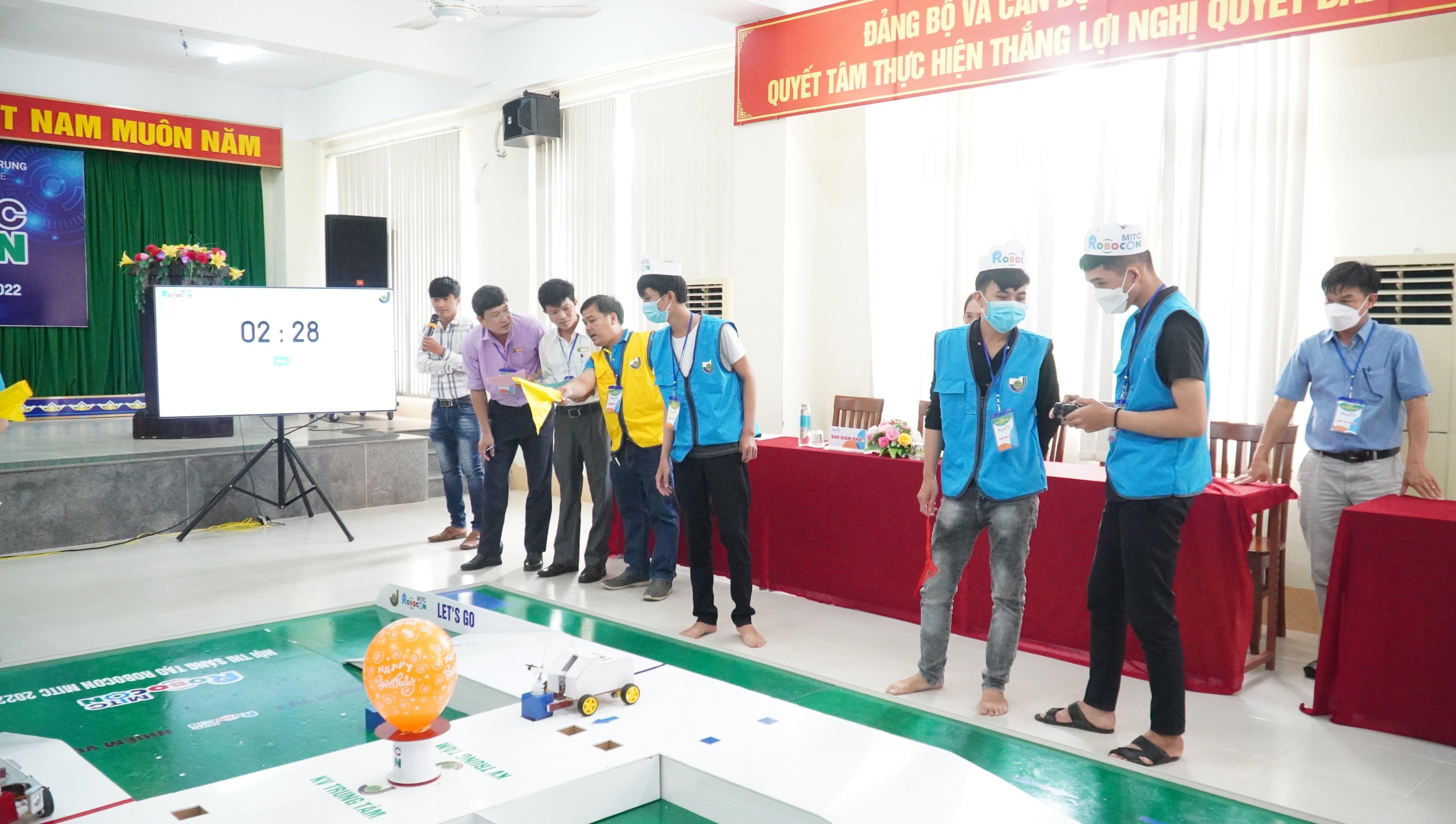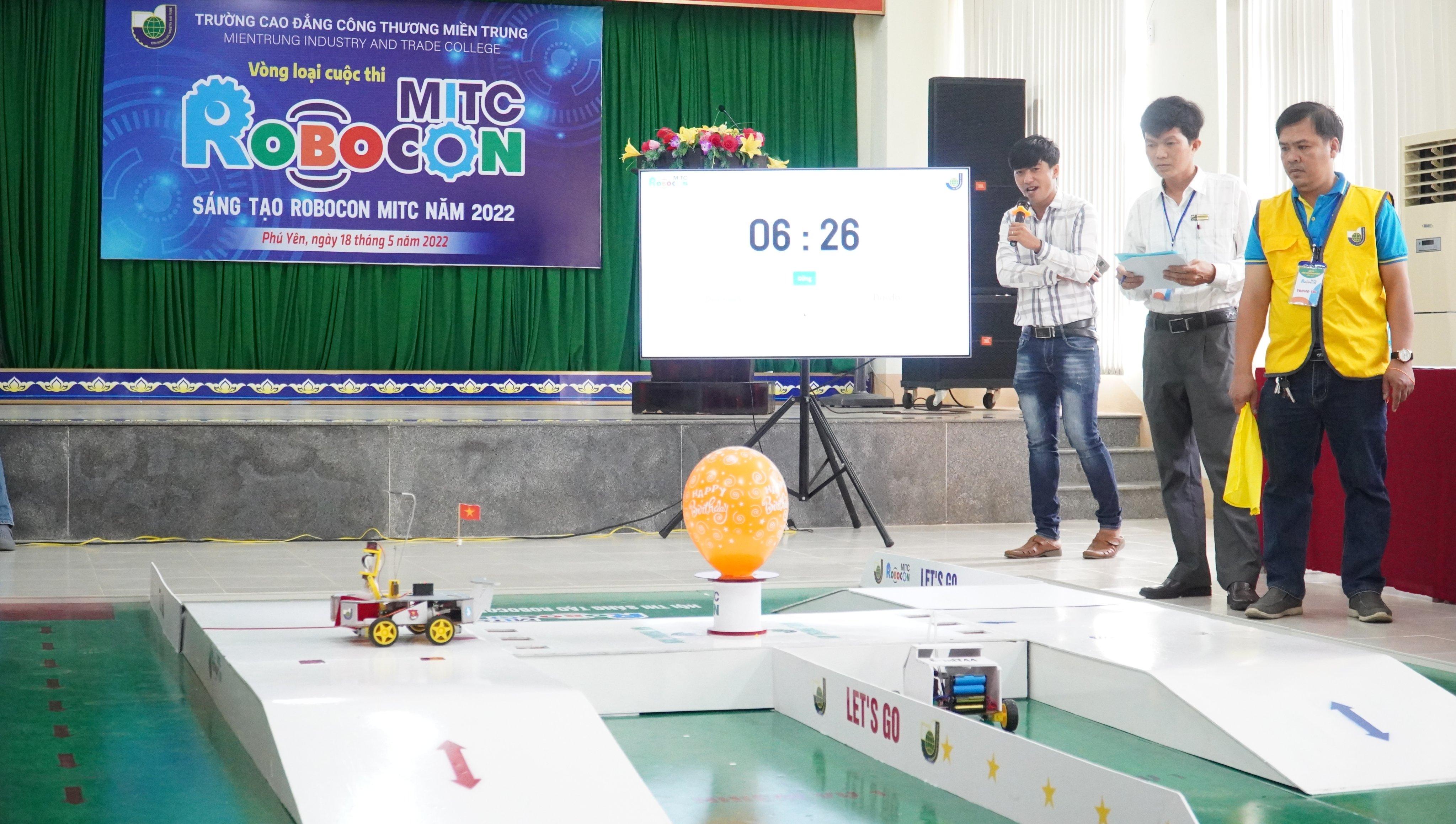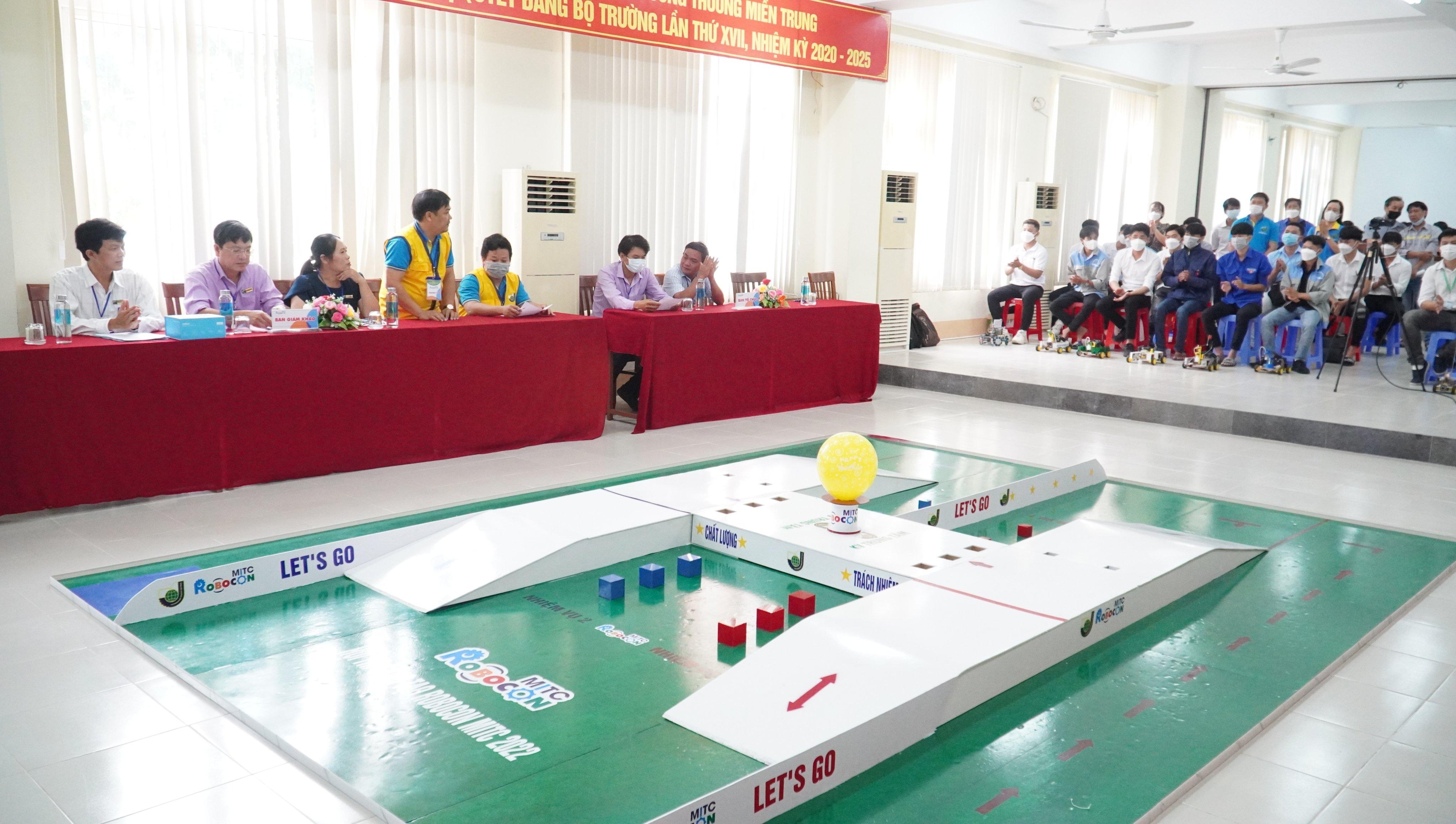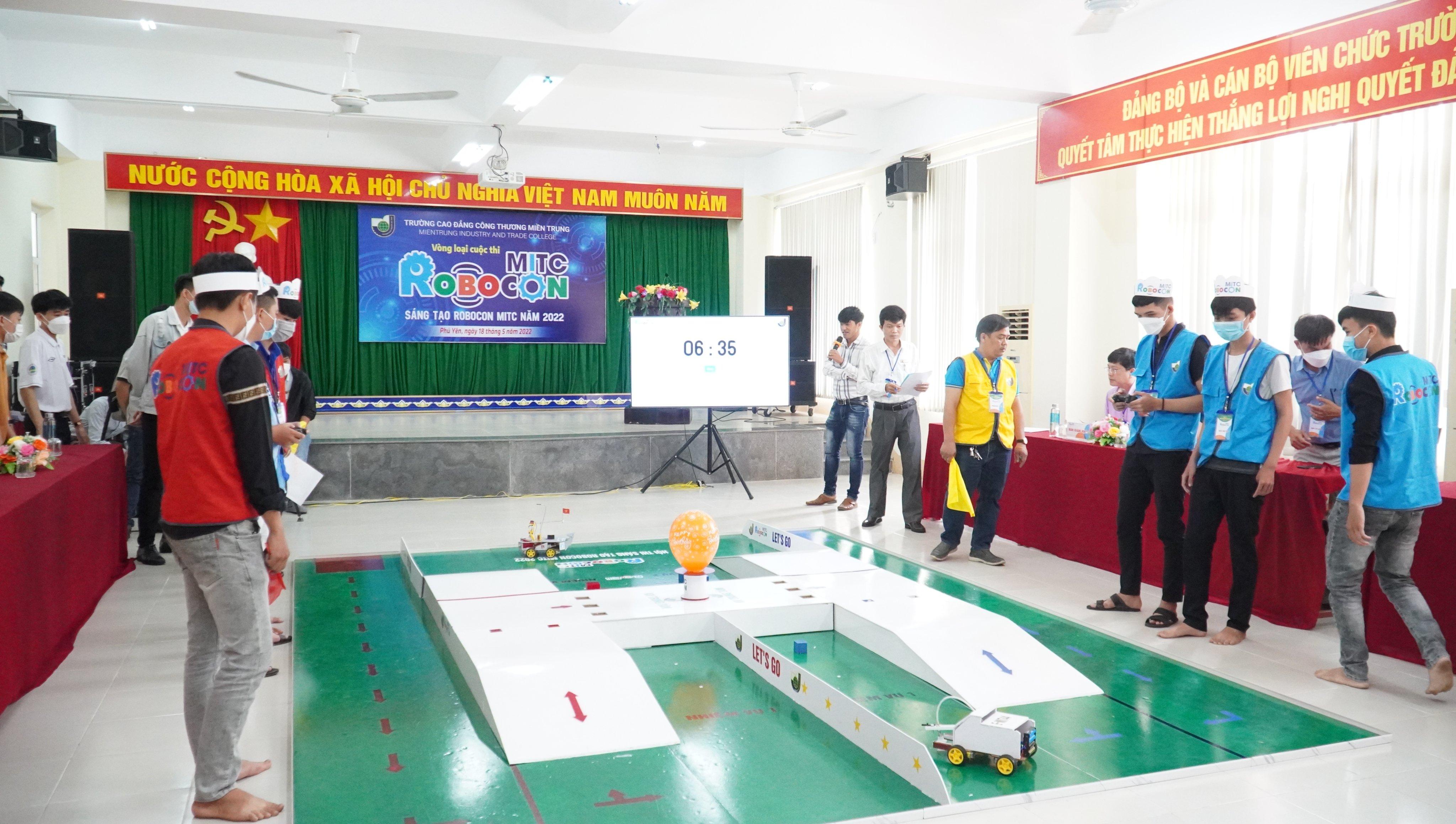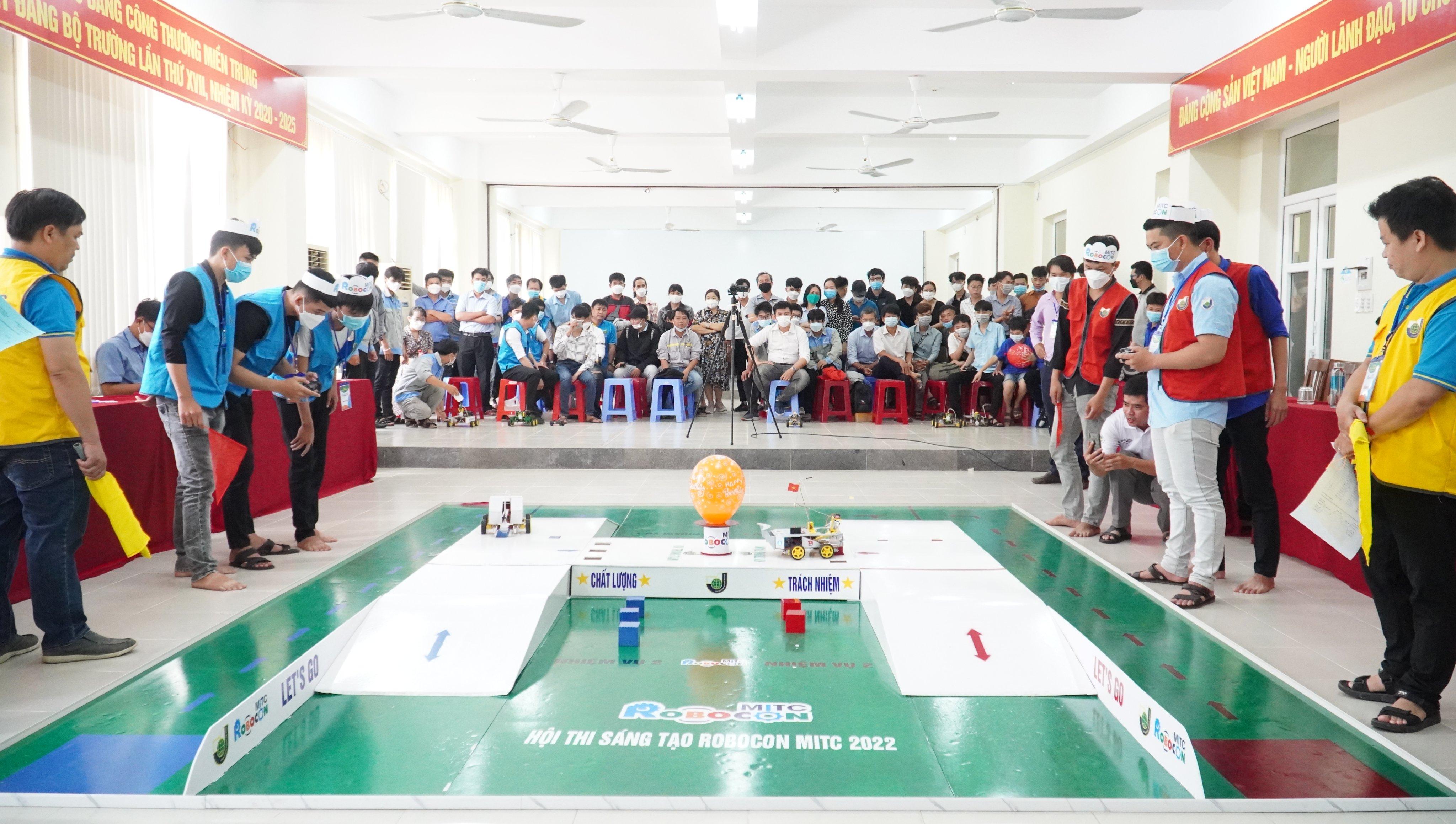 Sáng ngày 18/5, tại Hội trường B2, cơ sở 2, đã diễn ra 12 trận vòng bảng cuộc thi Robocon MITC 2022 đến từ 12 đội thi của trường Cao đẳng Công Thương miền Trung và trường Cao đẳng Kỹ thuật Công nghệ Quy Nhơn.