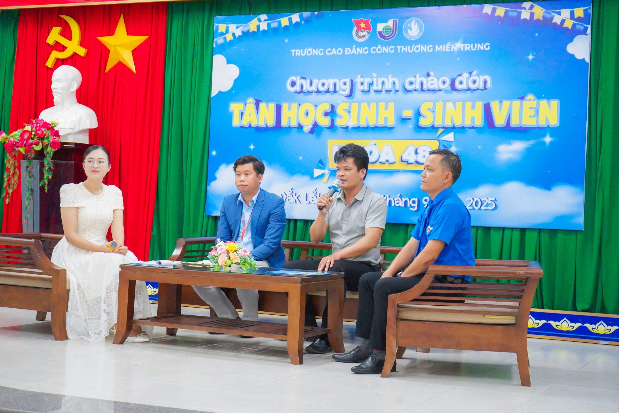 Hai khách mời và thầy Nguyễn Tấn Khả đã mang đến những câu chuyện chân thực, kinh nghiệm quý báu về học tập và lập nghiệp, đặc biệt là những bài học vượt khó, khởi nghiệp và cống hiến. Những chia sẻ truyền cảm hứng này đã tiếp thêm niềm tin, động lực cho tân sinh viên, giúp các bạn định hình rõ hơn hành trình phía trước.Trong phần giao lưu, nhiều câu hỏi thú vị từ các bạn tân sinh viên đã làm cho không khí chương trình thêm phần sôi nổi và gần gũi.