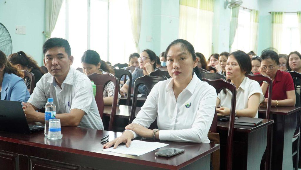 Tham dự chương trình về phía trường Cao đẳng Công Thương miền Trung có TS. Nguyễn Thị Kim Ngọc – Ủy viên Ban thường vụ Đảng ủy, Phó Hiệu trưởng. TS Nguyễn Trung Hòa – Chuyên gia chuyển đổi số và ứng dụng công nghệ AI. Về phía Phòng Giáo dục và Đào tạo có đại diện lãnh đạo và các chuyên viên cùng đại diện giáo viên đến từ các trường Tiểu học, Trung học cơ sở trên địa bàn.