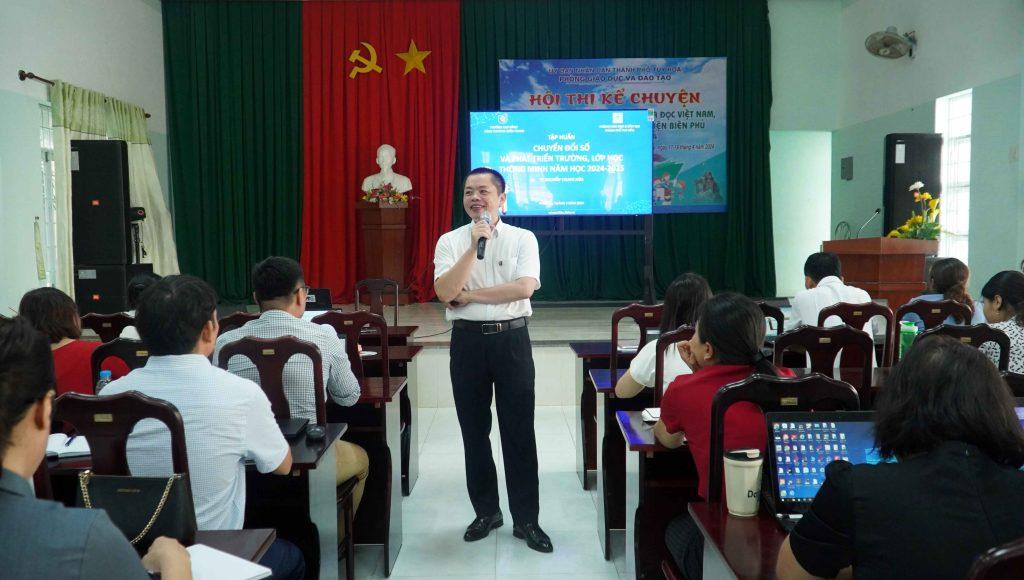 Buổi tập huấn được chia sẻ chính bởi TS Nguyễn Trung Hòa – Chuyên gia chuyển đổi số và ứng dụng công nghệ AI, Trường Cao đẳng Công Thương miền Trung. Tập huấn thu hút với các nội dung công tác chuyển đổi số trong công tác chuyên môn và công tác quản lý tại cấp Phòng, Trường cơ sở, định hướng việc phát triển lớp, trường học thông minh, tư vấn và đề xuất các giải pháp cần thực hiện hiện trong công tác chuyển đổi số và phát triển lớp, trường học thông minh. Ứng dụng công nghệ thúc đẩy hoạt động chuyển đổi số và thông minh hóa trong trường học.