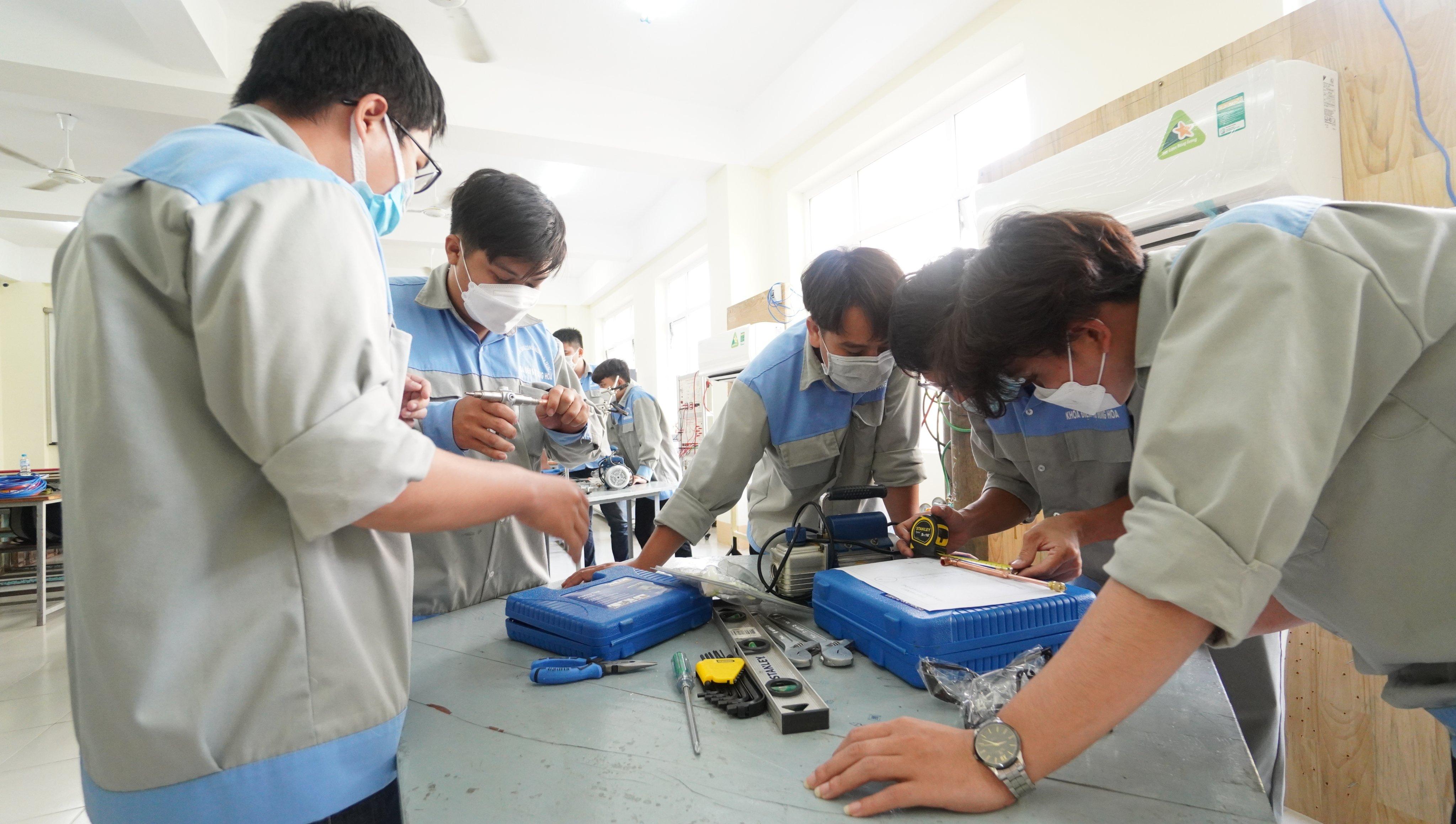 Các bạn HSSV ngành Kỹ thuật máy lạnh và Điều hòa không khí thực hành trong buổi Tập huấn