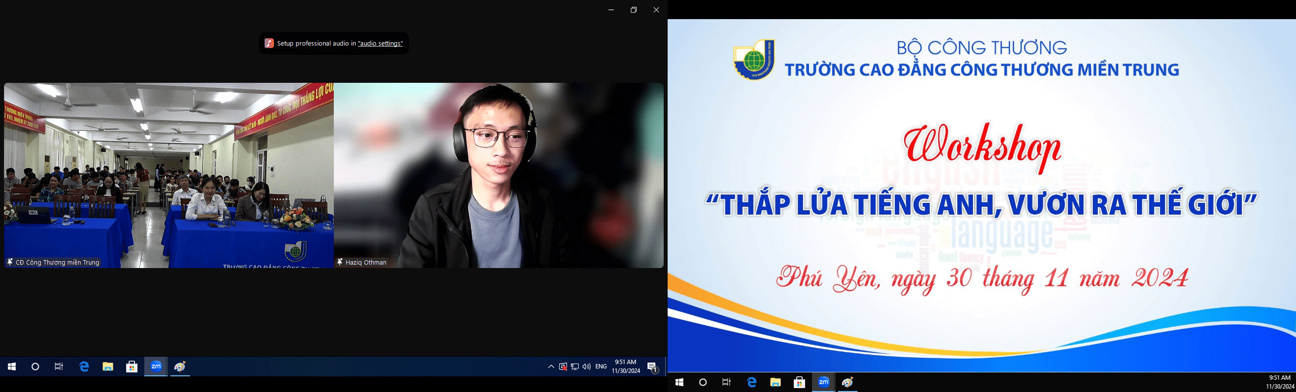 Bạn Muhammad Haziq, Quốc tịch Bru-nây, cũng chia sẻ về phương pháp học Tiếng Anh hiệu quả từ kinh nghiệm của bản thân thông qua trực tuyến