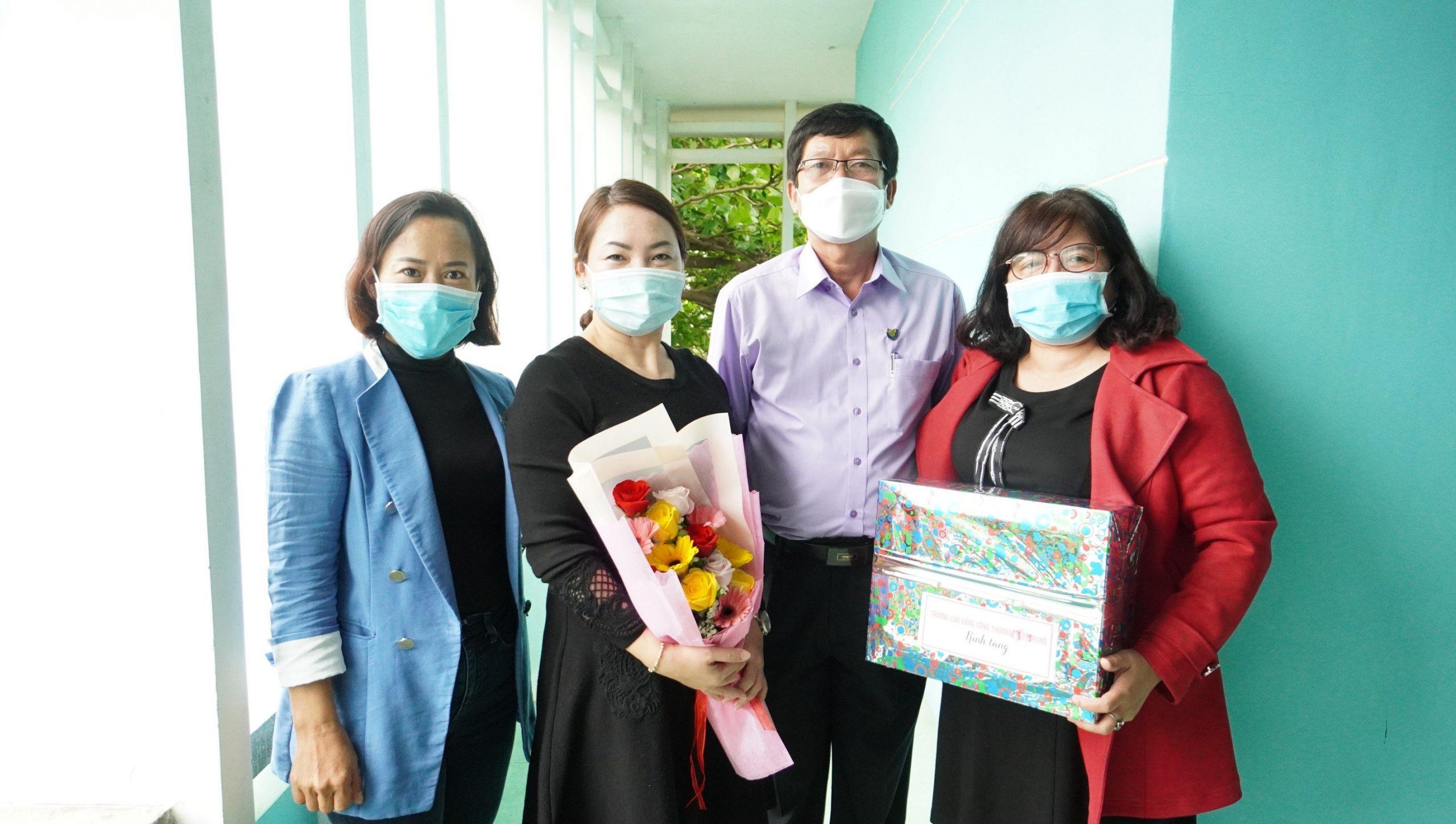 Đoàn tặng quà, ThS. Nguyễn Văn Đức – Phó Hiệu trưởng nhà trường và ThS. Cao Thị Nhung – Chủ tịch Công đoàn – Trưởng phòng Tổ chức hành chính, đã đến thăm hỏi và tặng quà tại các cơ sở y tế trên địa bàn như: Bệnh Viện đa khoa Tỉnh, trường Cao đẳng Y và Trung tâm Chăm Sóc Sức Khỏe Cán Bộ. Thay mặt cho tập thể nhà trường, Ths. Nguyễn Văn Đức đã gởi những lời chúc mừng tốt đẹp nhất cùng tình cảm thân thiết quý trọng đến toàn thể cán bộ Y Tế tại các cơ sở. Cũng trong dịp này, đoàn cũng đã đến thăm tặng quà và gởi những lời chúc tới BS. Tâm – Phụ trách Y tế nhà trường.