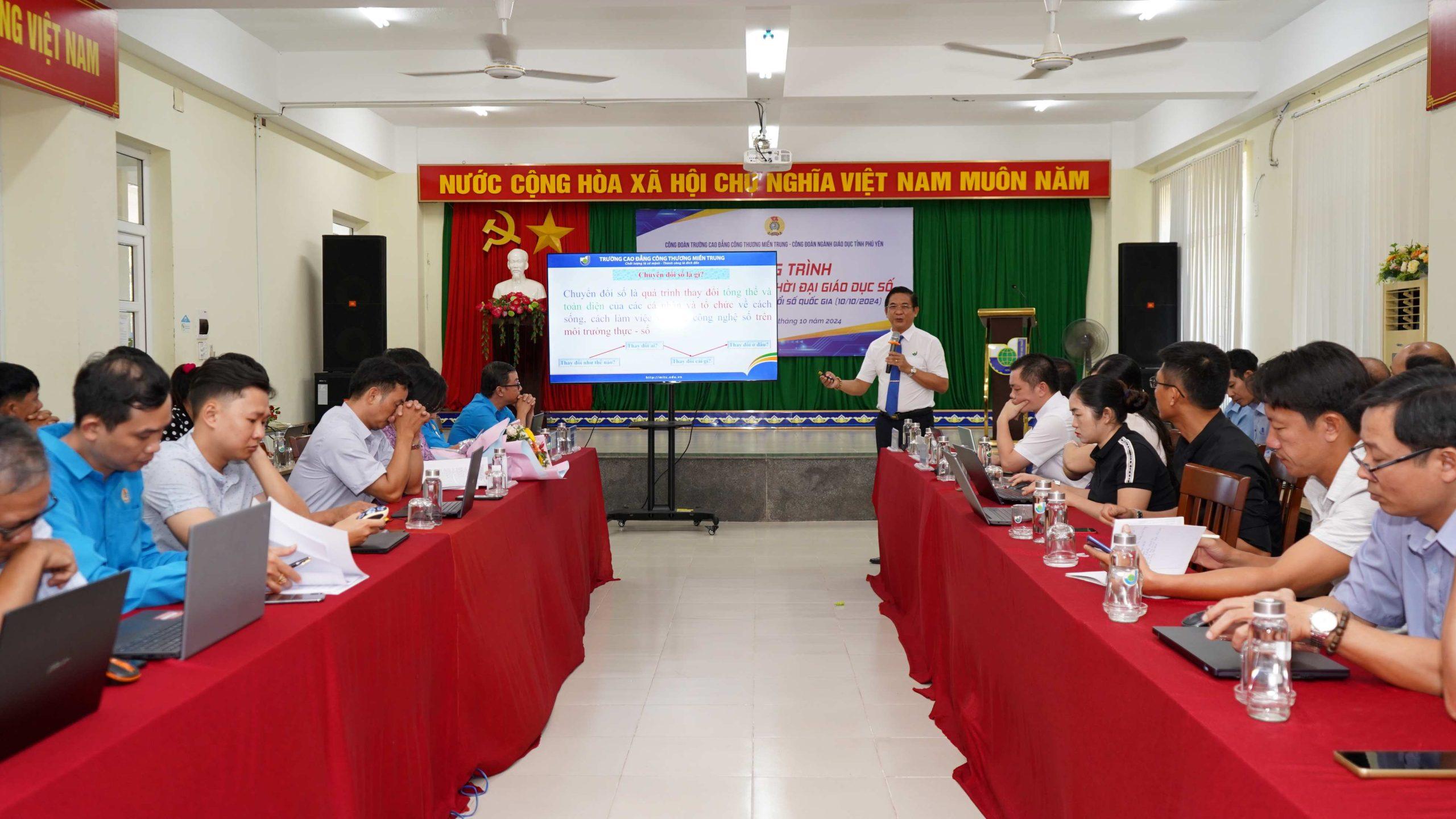 Ngày 18/10/2024, Công đoàn Trường Cao đẳng Công Thương miền Trung tổ chức chương trình “Cán bộ Công đoàn thời đại giáo dục số” hưởng ứng Ngày chuyển đổi số quốc gia (10/10/2024).