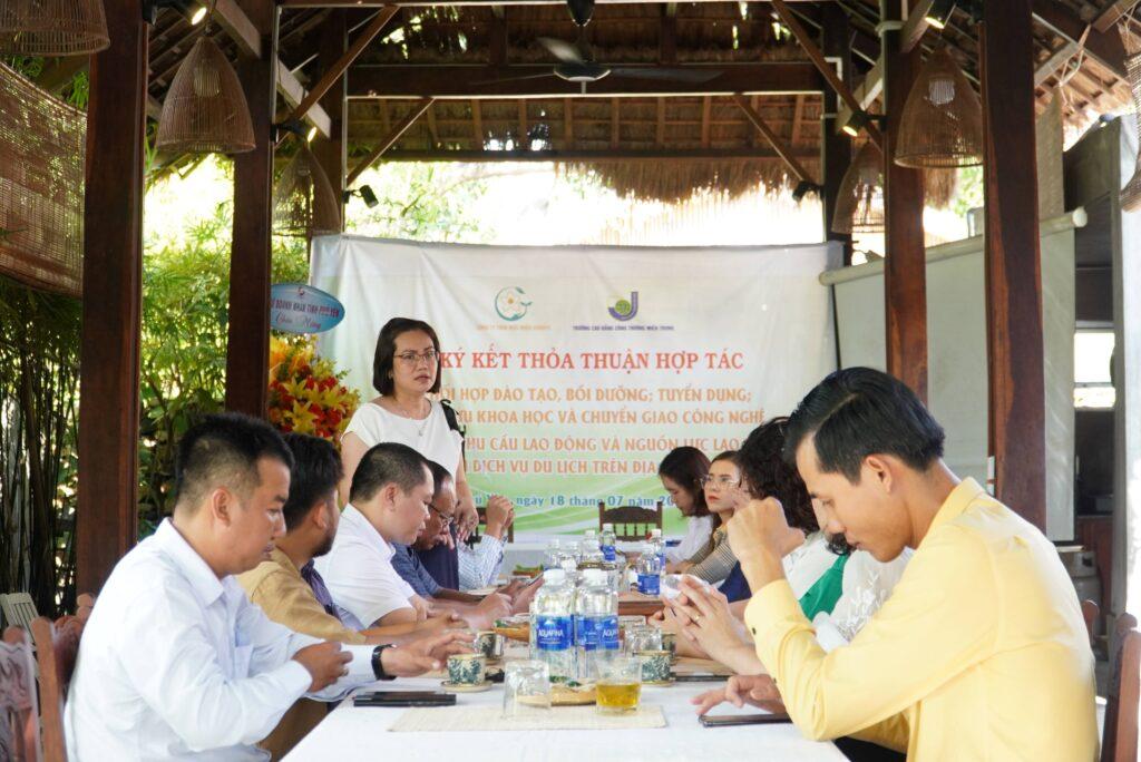 Chiều ngày 18/7/2023, tại Công ty TNHH Mộc Miên groups đã tổ chức buổi làm việc đi đến ký kết hợp tác với Trường Cao đẳng Công Thương miền Trung (MITC) và Tọa đàm về nhu cầu lao động và nguồn lao động trong ngành Dịch vụ du lịch trên địa bàn tỉnh Phú Yên. Nhằm mục đích cùng nhau nâng cao chất lượng đào tạo, trang bị kiến thức chuyên ngành và kỹ năng hành nghề cho người học, đồng thời tạo điều kiện thuận lợi cho việc tuyển dụng và phát triển nguồn nhân lực chất lượng cao cho Doanh nghiệp.