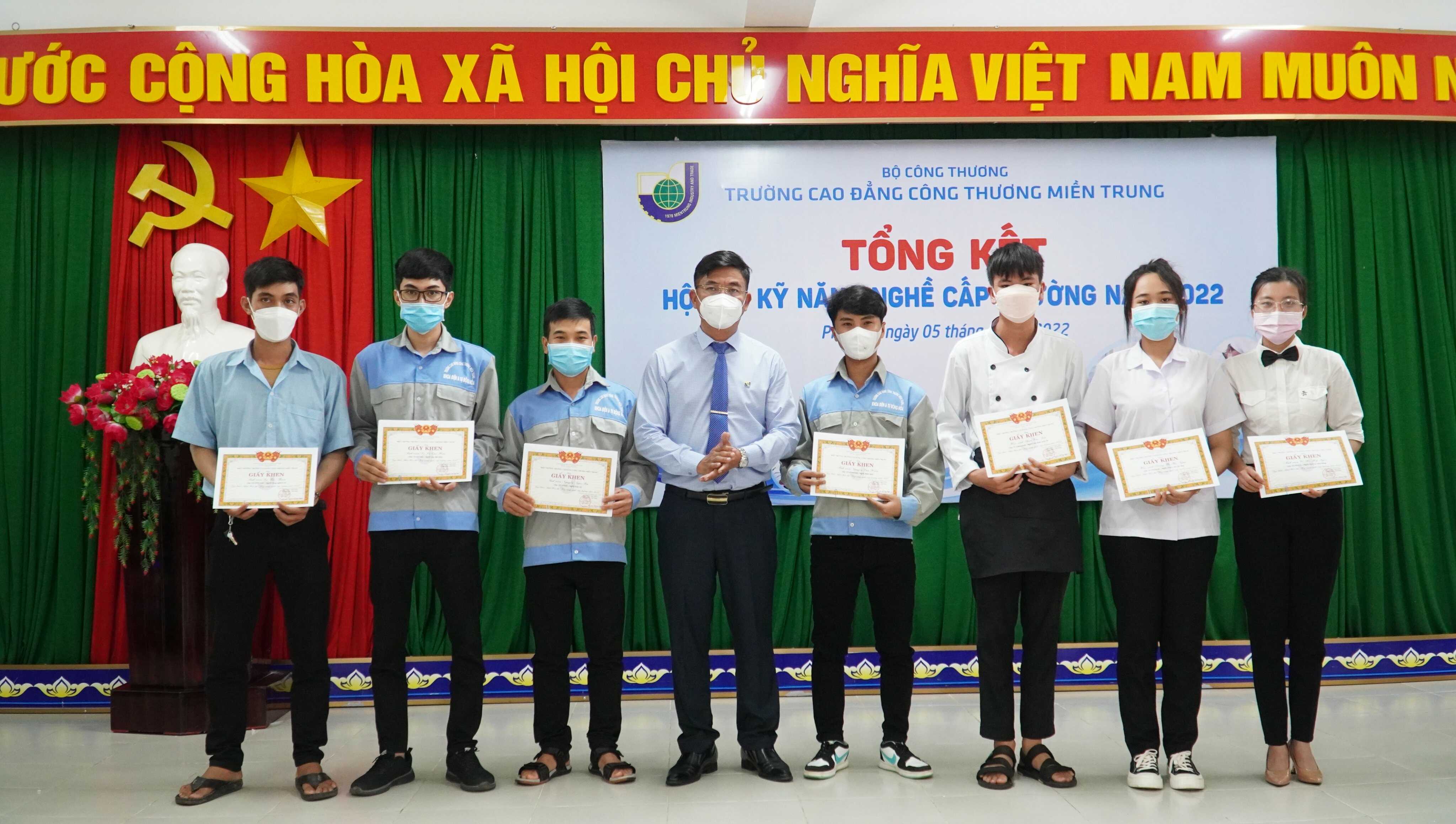 Chiều ngày 05/4, tại Hội trường B2, cơ sở 2, trường Cao đẳng Công Thương miền Trung đã tổ chức buổi Lễ Tổng kết hội thi Kỹ năng nghề cấp trường năm 2022. Tham dự buổi Lễ có TS. Trần Kim Quyên – Bí thư Đảng ủy – Chủ tịch Hội đồng trường – Hiệu trưởng Nhà trường; cùng với Ban giám hiệu, trưởng phó các đơn vị và toàn thể HSSV tham dự Hội thi.