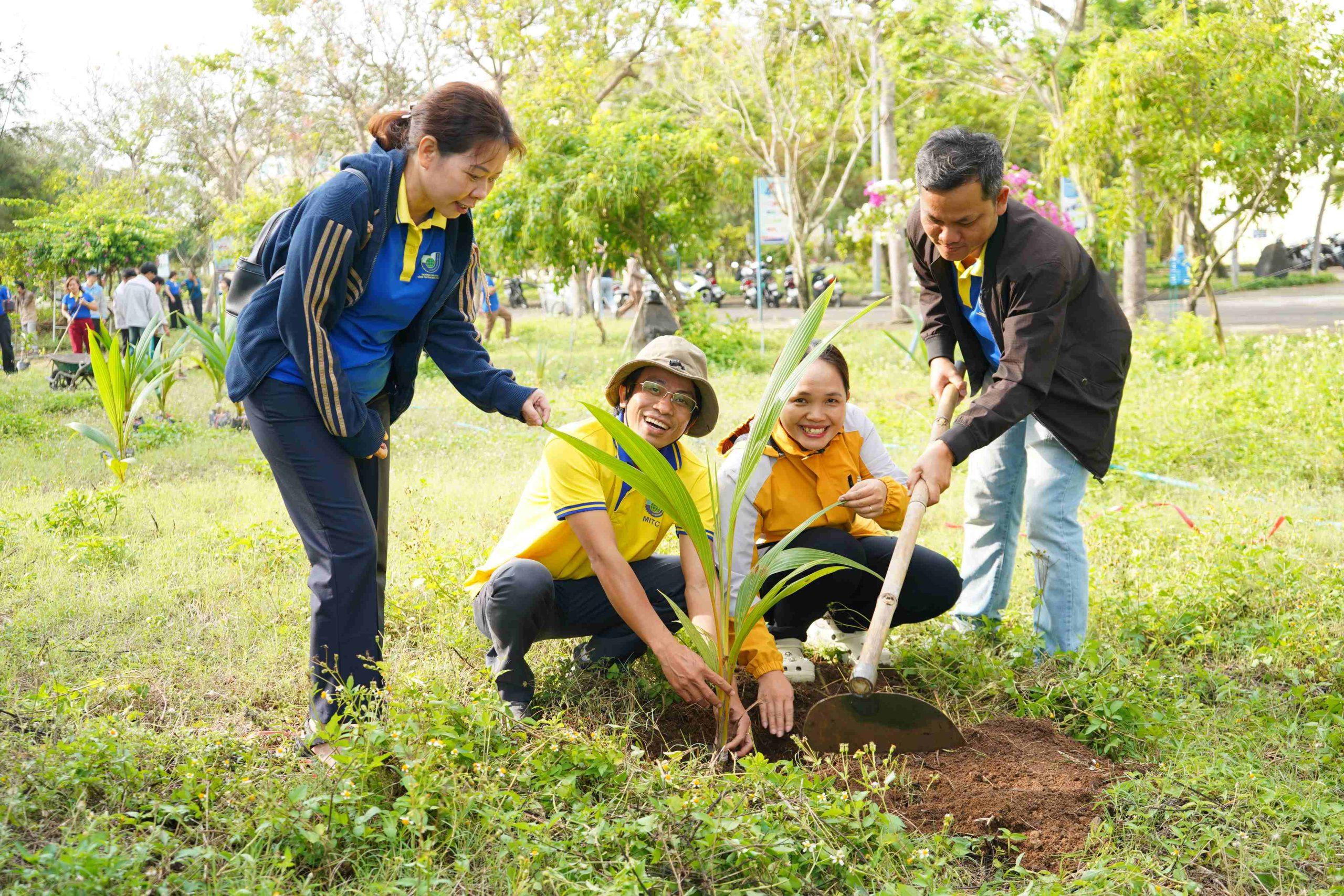 Ngay sau chương trình phát động, toàn thể thầy cô toàn trường và học sinh sinh viên đã cùng tham gia trồng cây trong khuôn viên trường trong không khí phấn khởi của những ngày đầu xuân. Những mầm cây được trồng hôm nay không chỉ góp phần làm đẹp cảnh quan Nhà trường mà còn mang ý nghĩa biểu tượng cho sự phát triển bền vững, thể hiện quyết tâm của tập thể viên chức, người lao động và học sinh sinh viên MITC trong việc gìn giữ môi trường và lan tỏa những giá trị tốt đẹp vì cộng đồng.