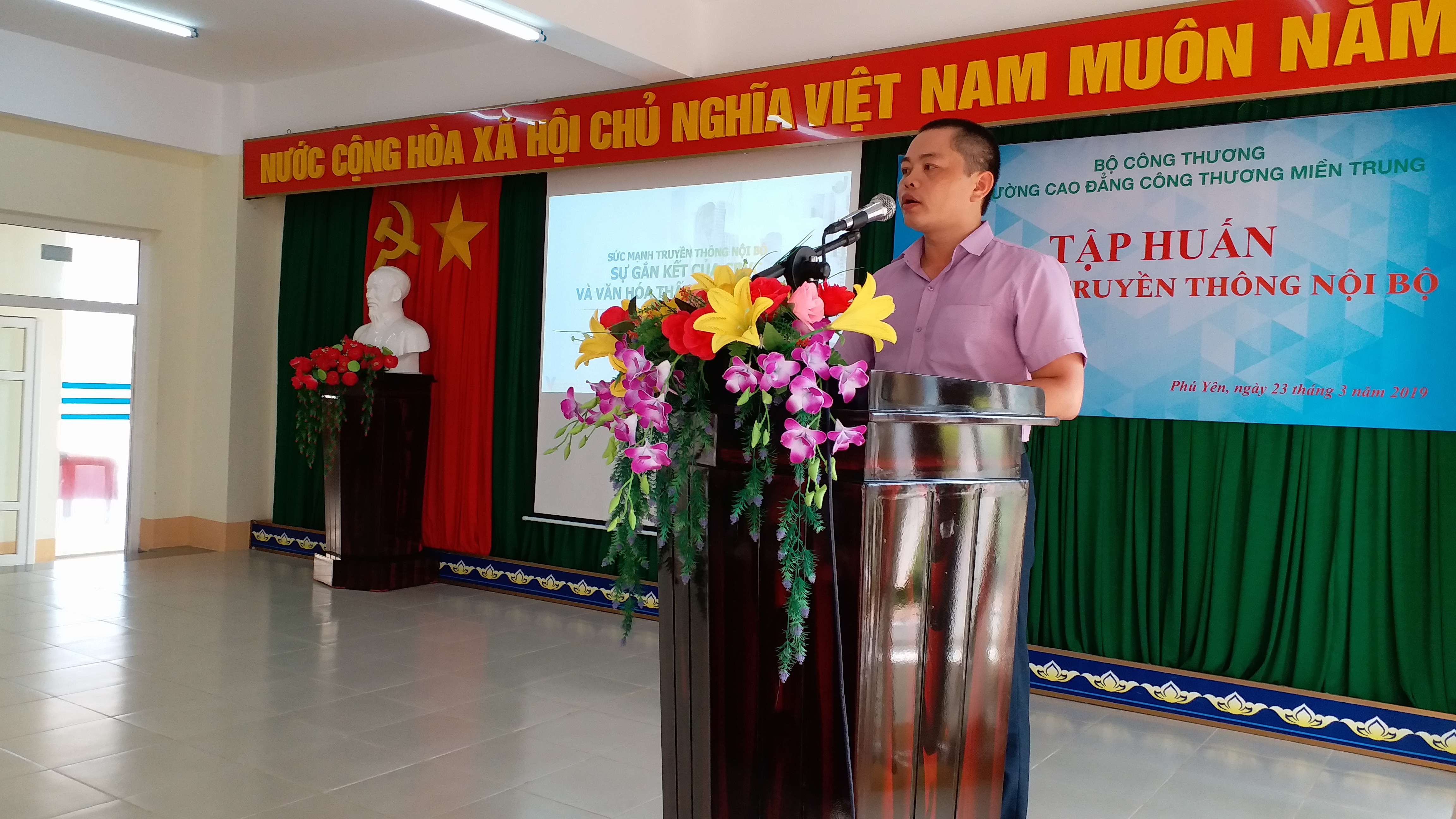 Với mục tiêu nâng cao, bồi dưỡng và chia sẻ kinh nghiệm cho lực lượng làm công tác truyền thông, ngày 23/3 tại Hội trường B2 cơ sở 2, Trường Cao đẳng Công Thương miền Trung đã tổ chức Lớp tập huấn kỹ năng Truyền thông nội bộ. Về tham dự Lớp tập huấn có TS Trần Kim Quyên – Hiệu trưởng nhà trường cùng lãnh đạo các trường cao đẳng, đại học trên địa bàn tỉnh Phú Yên và hơn 200 thầy cô giáo của các trường.