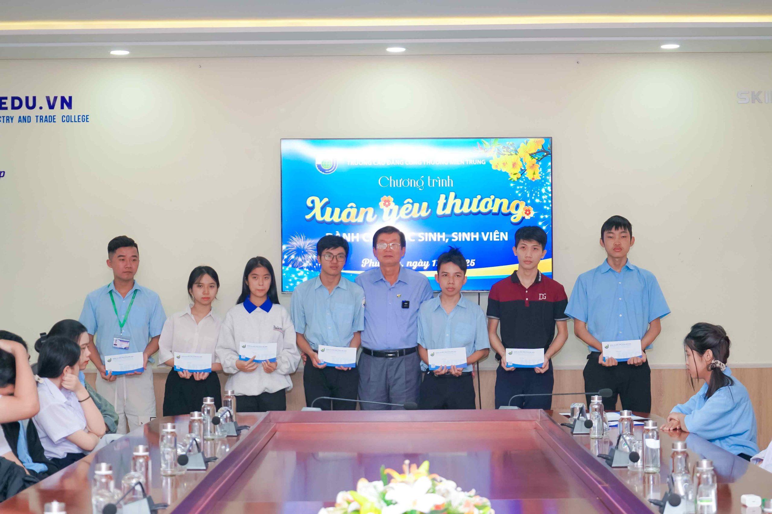 Sáng ngày 17/1, tại Phòng họp 208, A2, Cơ sở 2, trường Cao đẳng Công Thương miền Trung, chương trình “Xuân yêu thương 2025” đã diễn ra trong không khí ấm áp, tràn đầy sắc xuân và sự gắn kết. Chương trình có sự tham dự của thầy Nguyễn Văn Đức – Phó Hiệu trưởng Nhà trường, cùng Quý thầy cô là cố vấn học tập các lớp và hơn 40 bạn HSSV có hoàn cảnh khó khăn.