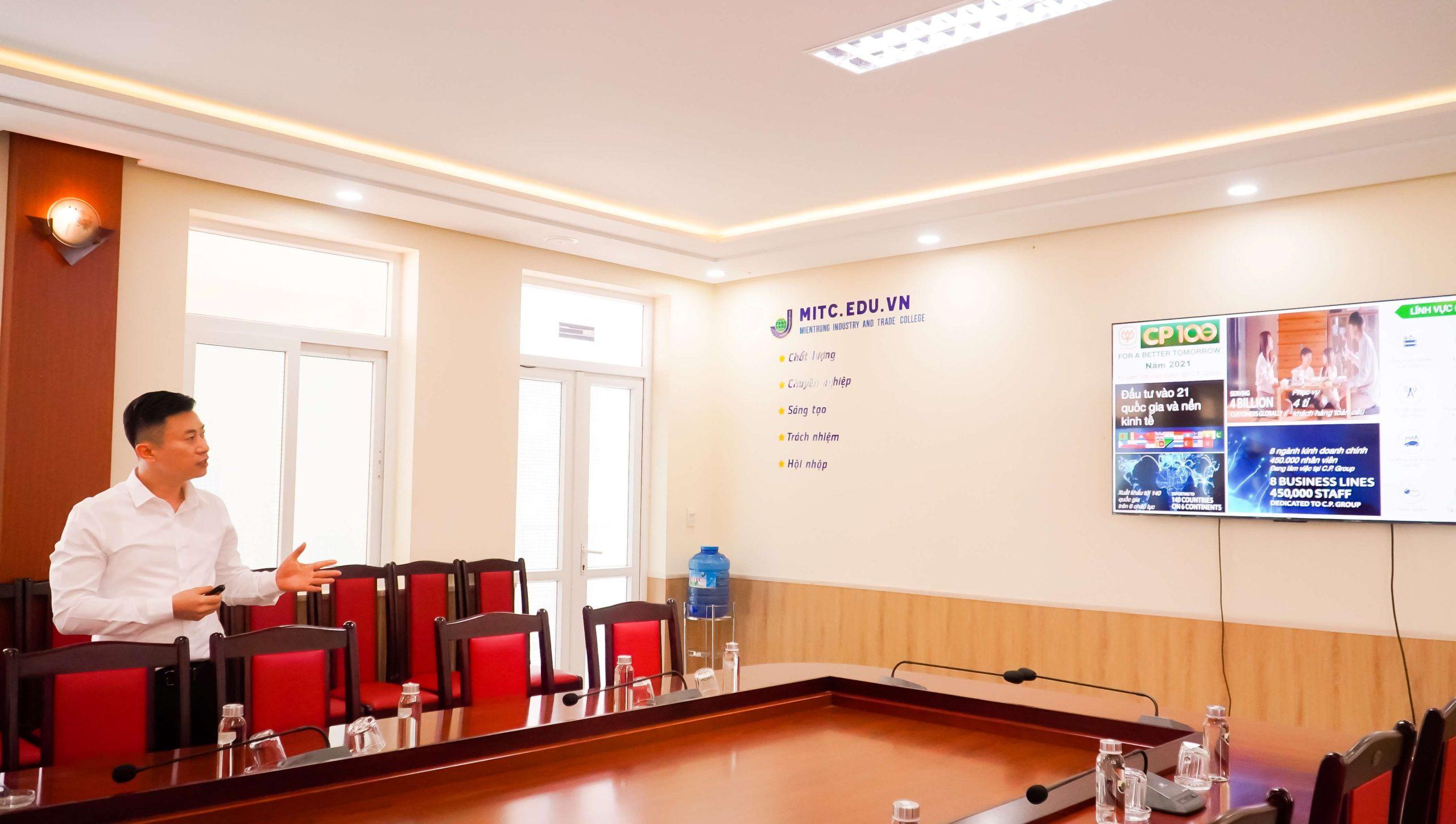 Tại buổi làm việc, ông Ngô Văn Đông đã giới thiệu về Công ty Cổ phần Chăn nuôi C.P. Việt Nam, thành viên của tập đoàn Charoen Pokphand Group, một trong những tập đoàn đa quốc gia lớn mạnh tại Thái Lan. Với tầm nhìn phát triển bền vững, C.P. Việt Nam đóng vai trò tiên phong trong ngành chăn nuôi và chế biến thực phẩm, cung cấp sản phẩm an toàn và chất lượng cho người tiêu dùng. Công ty luôn chú trọng vào việc phát triển nguồn nhân lực chuyên nghiệp, giàu kinh nghiệm và sẵn sàng đón nhận những cơ hội hợp tác đào tạo với các cơ sở giáo dục uy tín như MITC.