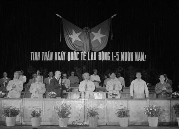 Chủ tịch Hồ Chí Minh dự Lễ kỷ niệm Ngày Quốc tế lao động ngày 01/5/1955 (Ảnh tư liệu)