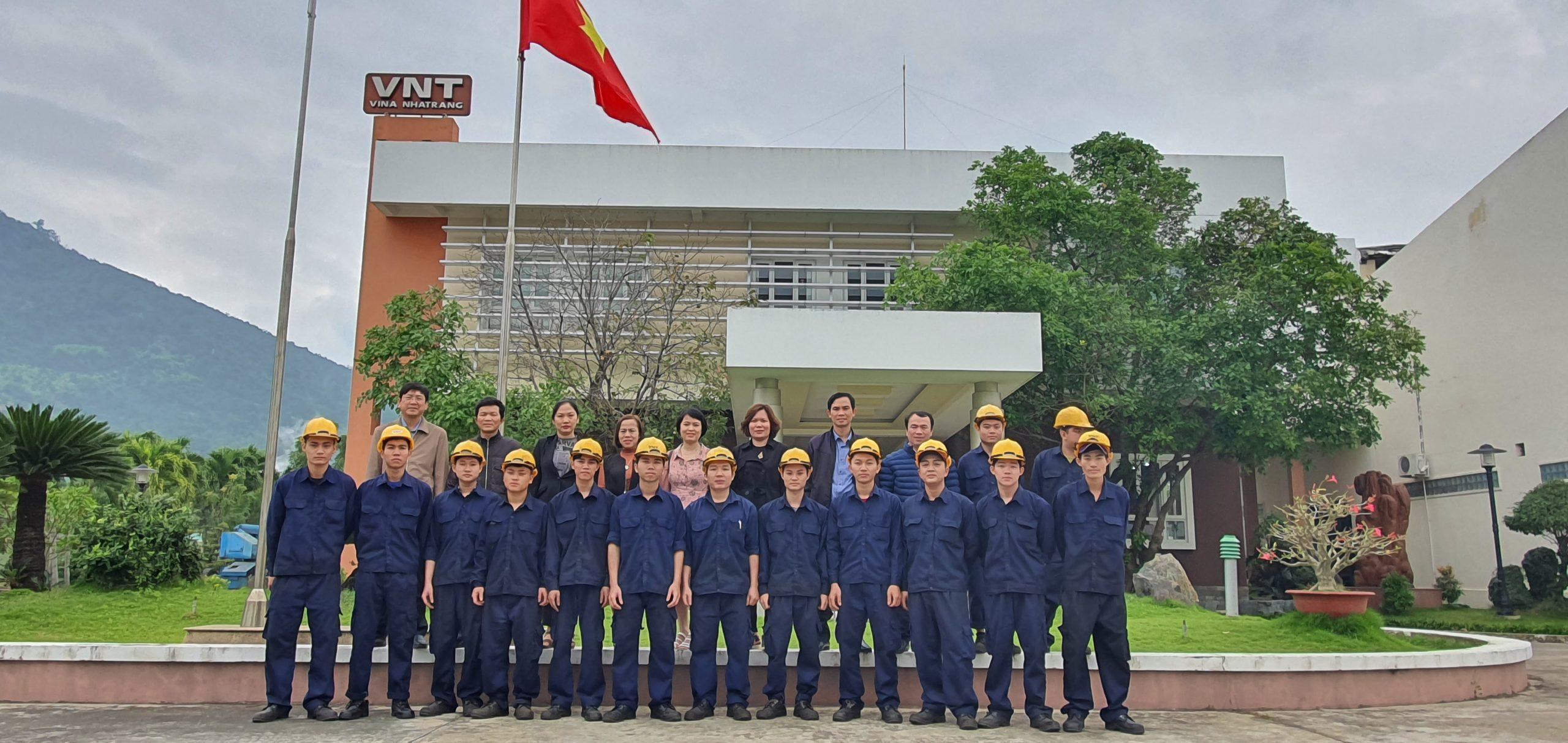 Ban Giám hiệu Nhà trường cùng các thầy cô trường Cao đẳng Công Thương miền Trung chụp hình lưu niệm với các Sinh viên đang thực tập nghề tại Công ty Cổ phần cơ khí Vina Nha Trang