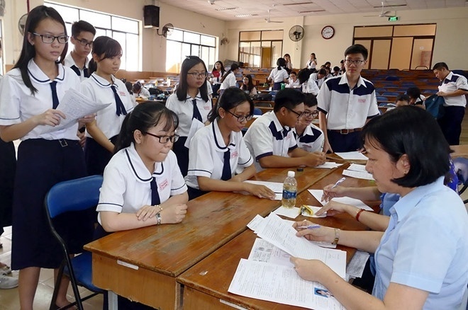 Học sinh lớp 12 nộp hồ sơ đăng ký dự thi THPT quốc gia 2018 tại trường