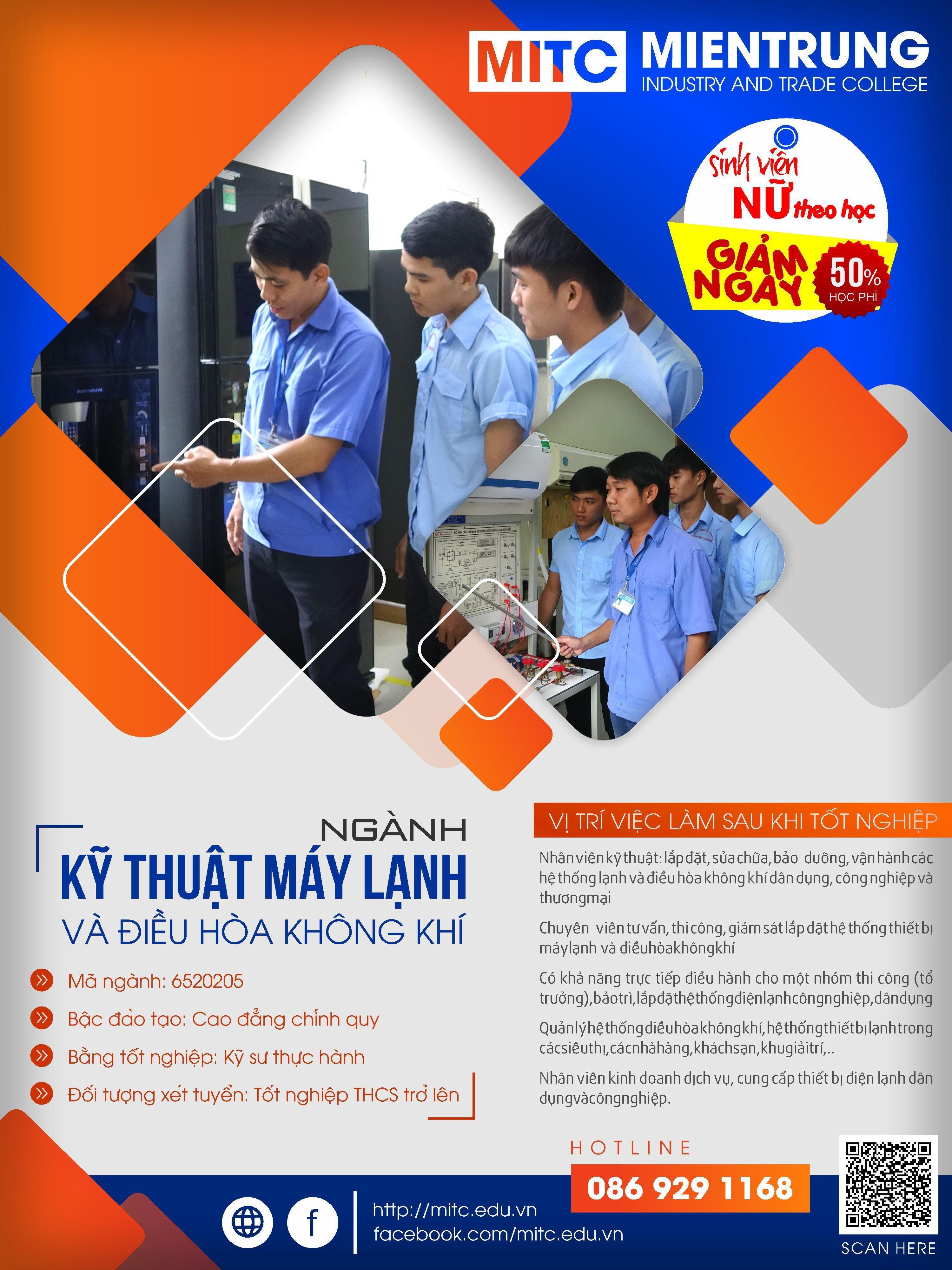 Đây là câu hỏi được đặt ra ở rất nhiều bạn trẻ có đam mê theo đuổi nghề điện lạnh. Với phương châm “thực học – thực nghiệp”, tại trường Cao Đẳng Công Thương các bạn sẽ được học với khung chương trình bám sát thực tế, điều này sẽ giúp nâng cao được kỹ năng tay nghề. Giúp các bạn có nền tảng vững chắc để thực nghiệp ở các doanh nghiệp. Không những thế với trang thiết bị hiện đại, cùng đội ngũ giảng viên giàu kinh nghiệm. Trường Cao Đẳng Công Thương Miền Trung tự tin sẽ đảm bảo 100% sinh viên sau khi tốt nghiệp sẽ có việc làm ngày.